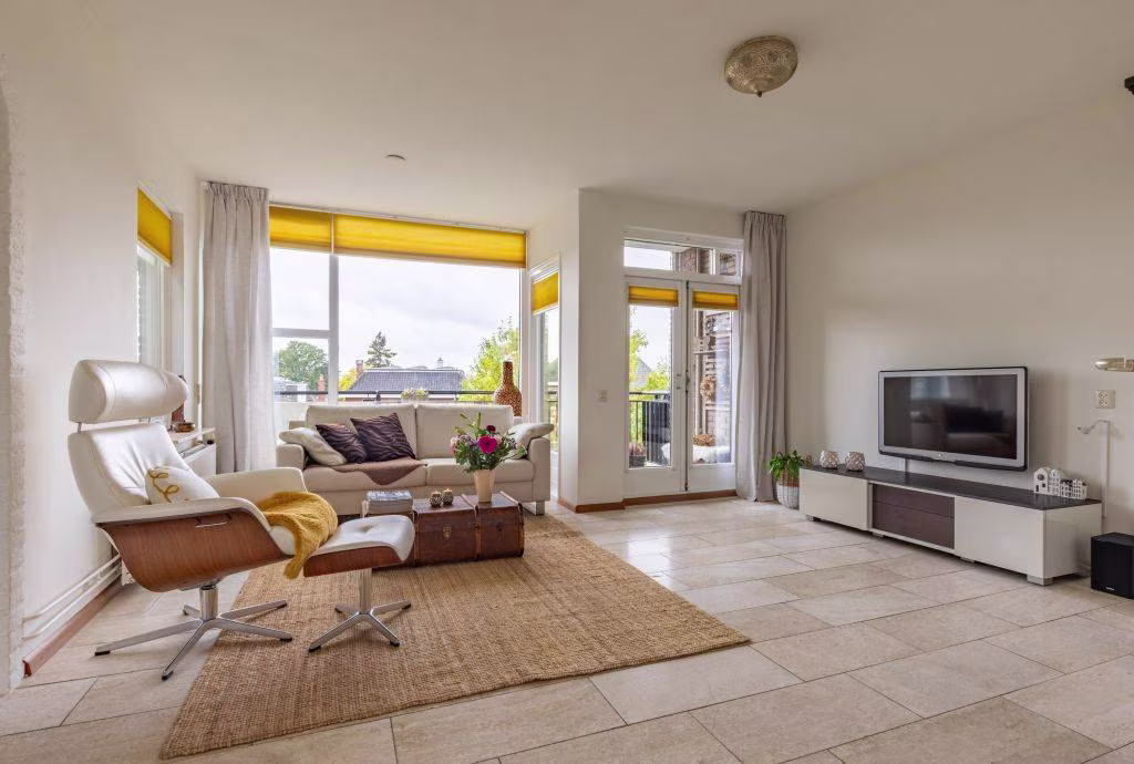 Met een woonoppervlakte van 114 m² is dit geen standaard appartement, maar een echte woonbeleving. De maisonnette voelt aan als een huis-in-een-huis en biedt verrassend veel ruimte. Zodra je de royale woonkamer binnenstapt, valt het meteen op: licht, lucht en uitzicht! Dankzij de hoekligging en de vele raampartijen baadt de woning in het daglicht. De extra zijkamer aan de woonkamer is een heerlijke bonus. En alsof dat nog niet genoeg is, zet je zo de deur open naar het ruime balkon op het westen – perfect voor een borrel in de avondzon. Zon, ruimte en zicht – dit is wat het balkon biedt.