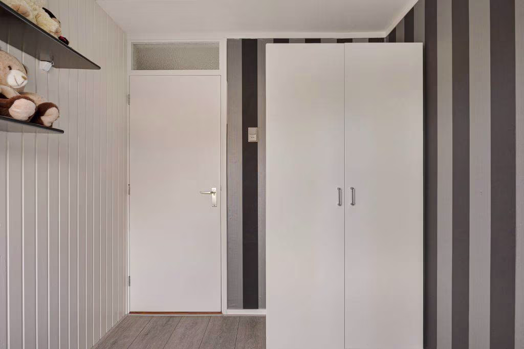 1e verdieping: overloop met toegang tot 3 slaapkamers, waarvan één met vaste kastenwand. De badkamer is uitgevoerd met wastafel, toilet en douchecabine. Op deze verdieping zijn de kunststof kozijnen uitgerust met rolluiken voor extra comfort.