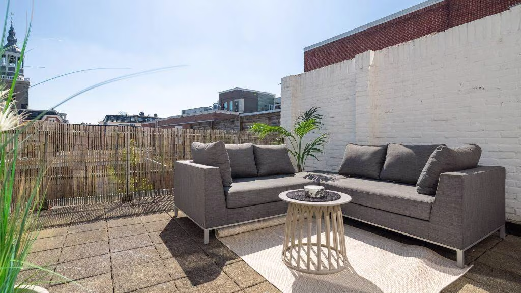 Een absoluut pluspunt is het uitzonderlijk ruime privébalkon, waar je heerlijk in de zon kunt zitten en kunt genieten van het vrije uitzicht over de stad en het groen — een zeldzame luxe midden in het centrum.