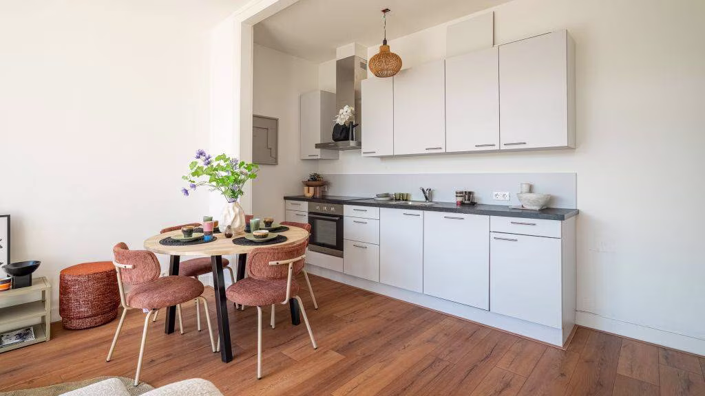 De woning is modern afgewerkt en voorzien van een nieuwe laminaatvloer met eiken uitstraling. Daarnaast is het gehele appartement uitgerust met vloerverwarming, wat zorgt voor een aangenaam en gelijkmatig wooncomfort. Met energielabel A profiteer je bovendien van lage energielasten.