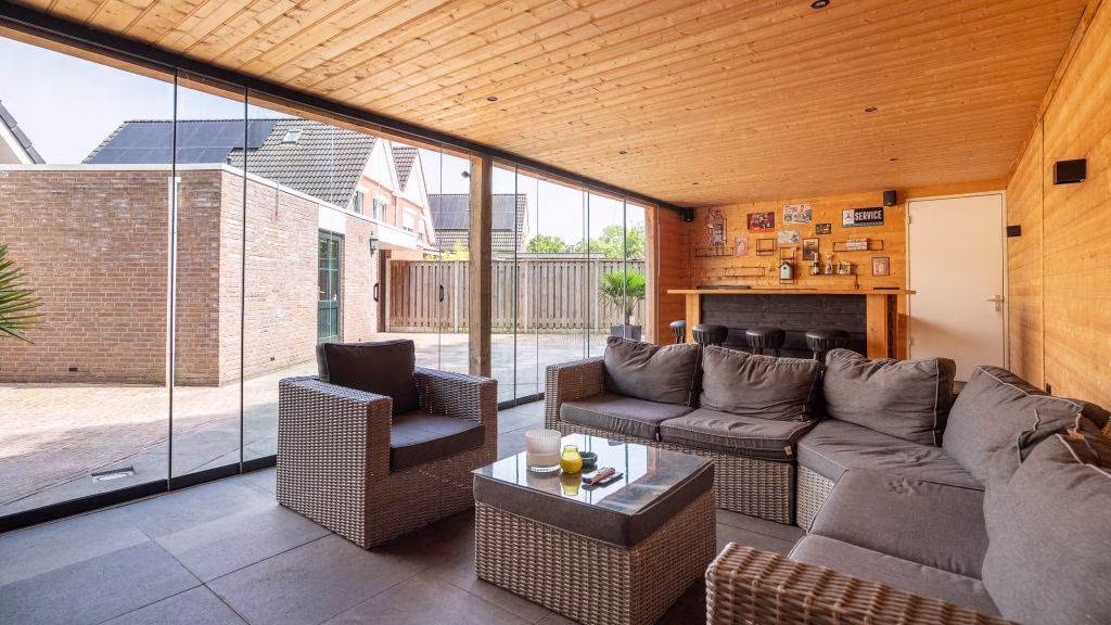 Het fijne aan deze woning is dat er op de begane grond een extra ruimte aanwezig is. Deze is op dit moment in gebruik als garage/bijkeuken maar de mogelijkheden zijn natuurlijk eindeloos. Het bijgebouw in de tuin welke nu in gebruik is als buitenbar is o.a. voorzien van een airco die kan koelen en verwarmen en een toilet. Ook deze ruimte geeft je volop mogelijkheden.