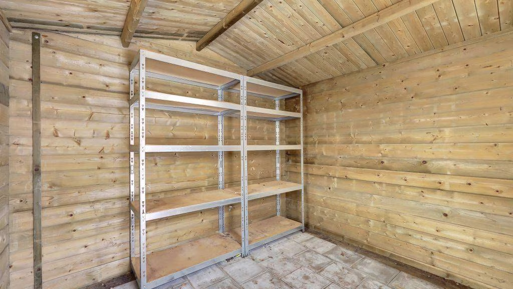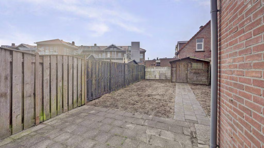 De diepe achtertuin is gelegen op het zuiden waardoor u altijd kunt genieten van de zon. In de tuin met achterom staat een houten berging.
