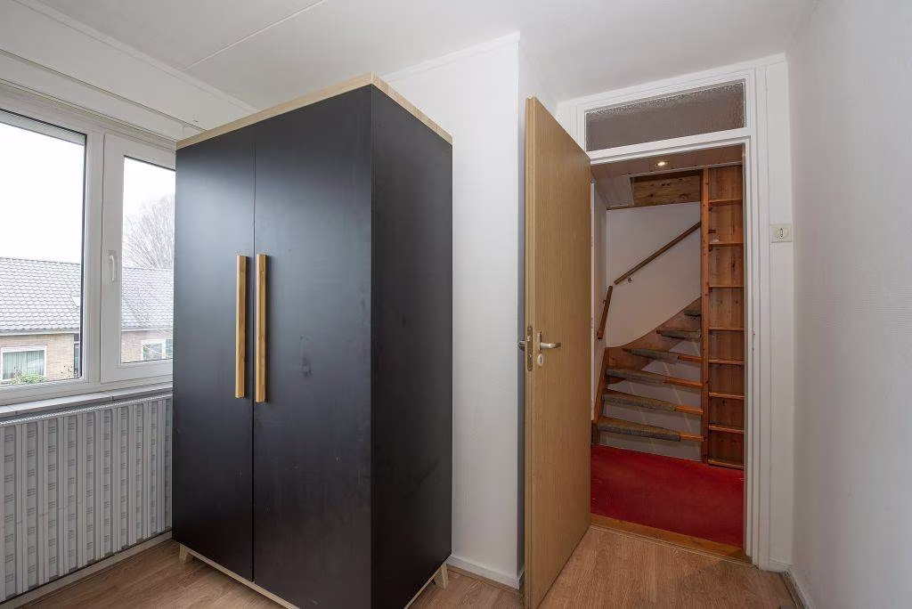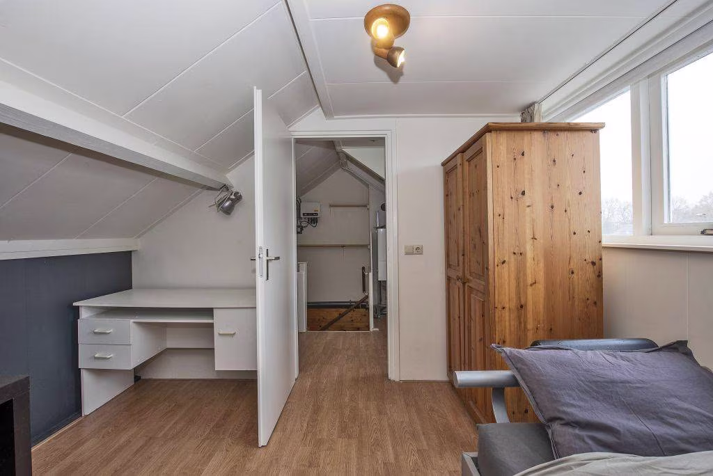 De tweede verdieping biedt nog een fijne verrassing: een ruime vierde slaapkamer met dakkapel aan de achterzijde. Dankzij de knusse indeling en bergruimte onder de schuine kanten voelt deze verdieping als een volwaardige leeflaag.
