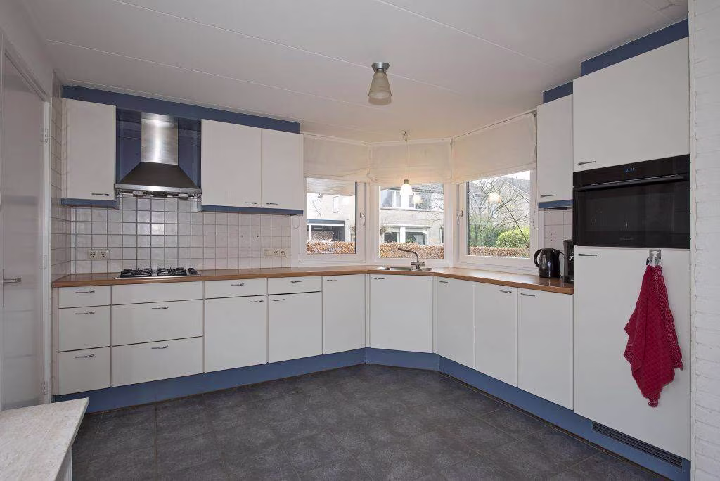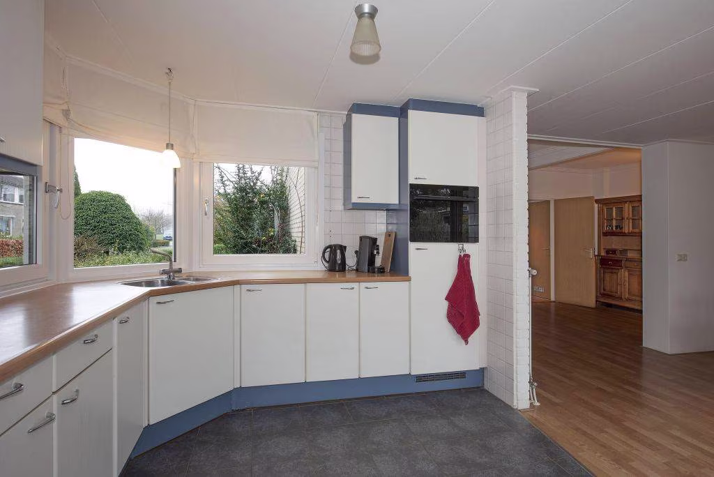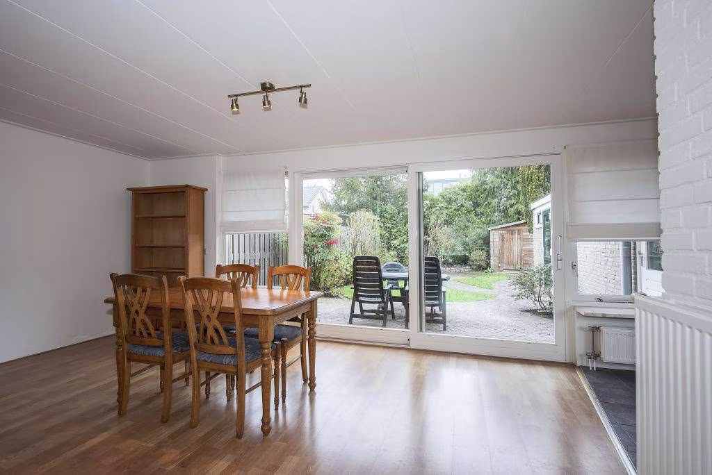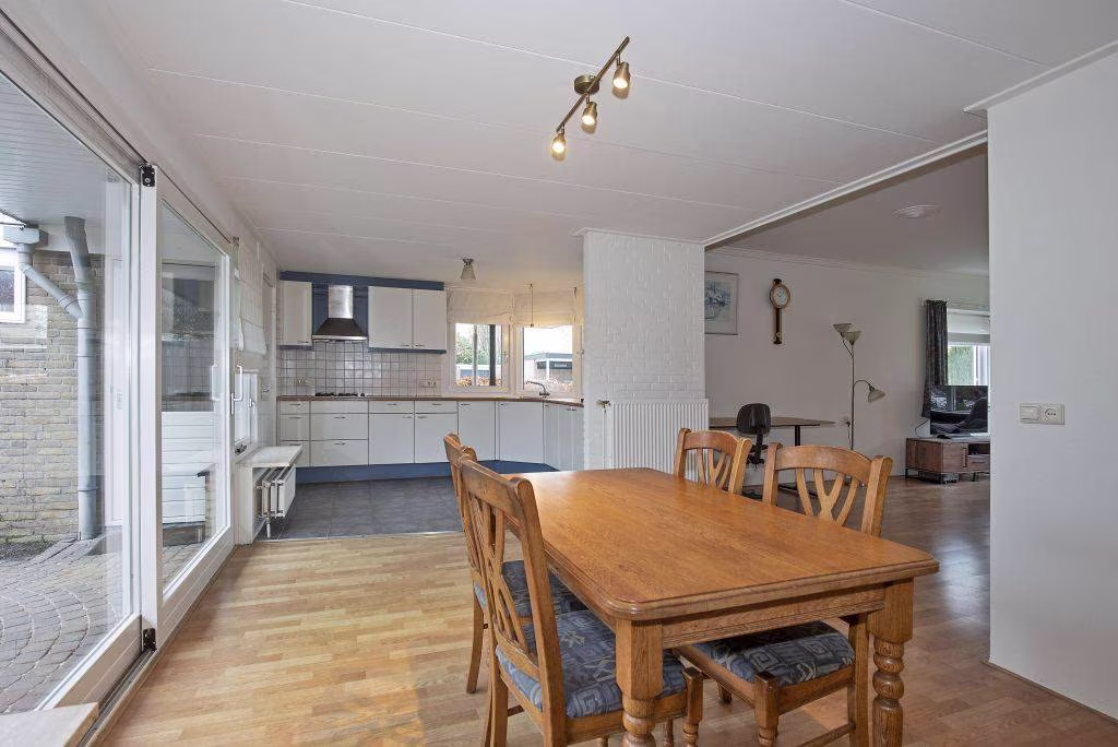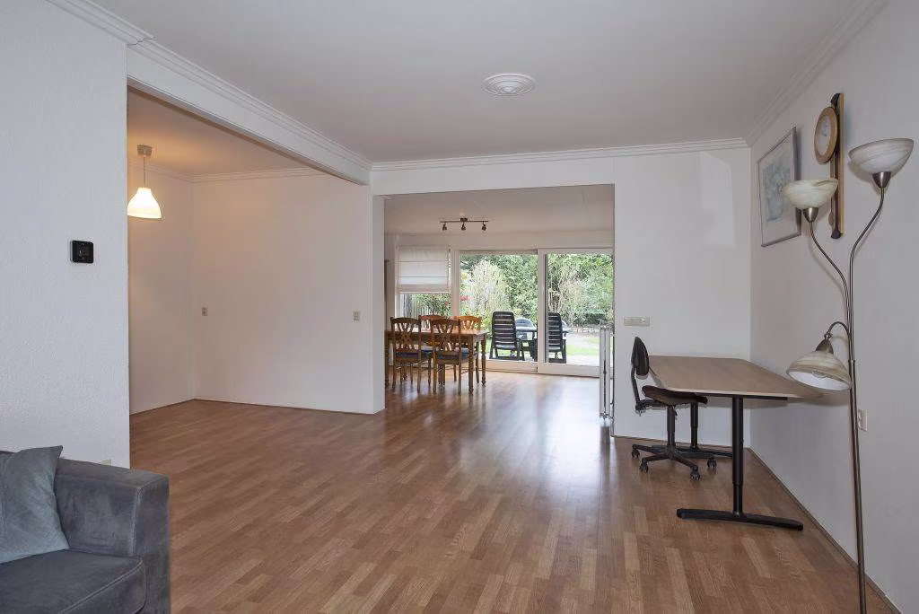 Zodra je binnenkomt, merk je hoe ruim en uitnodigend deze woning aanvoelt. De woonkamer aan de voorzijde is opvallend licht en biedt genoeg plek voor een comfortabele zithoek. Dankzij de open verbinding met de eethoek ontstaat er een fijne doorloop. Aan de achterzijde vind je de keuken, praktisch ingedeeld. Vanuit de keuken loop je door naar de bijkeuken, waar extra opbergruimte en de toegang tot de tuin samenkomen. Deze aanbouw zorgt net voor dat beetje extra leefruimte waar je elke dag plezier van hebt.