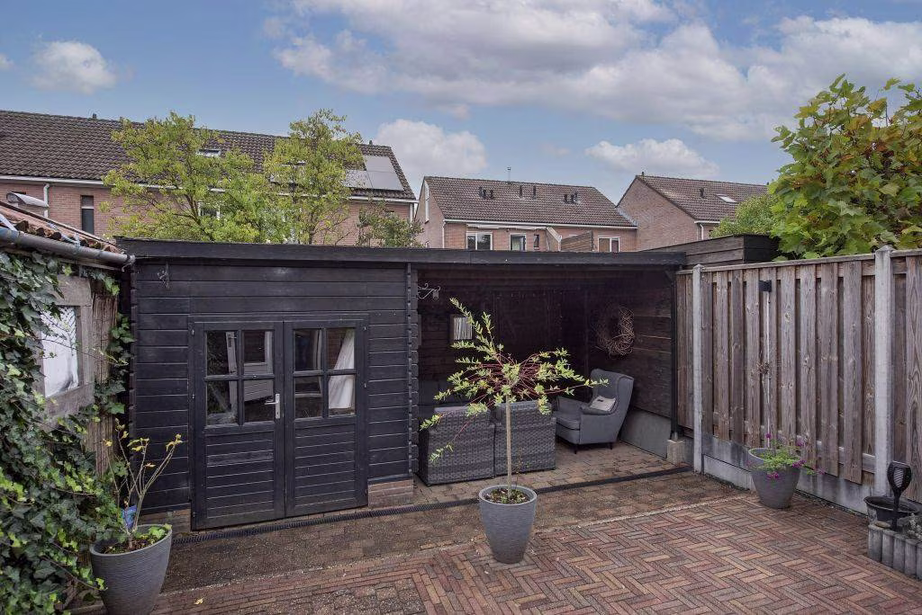 Aan de achterzijde vind je een fijne tuin op het westen, waar je een loungeplek vindt om na een drukke dag heerlijk te ontspannen. De tuin is onderhoudsvriendelijk en voorzien van een vrijstaande houten berging met elektra, ideaal voor fietsen of gereedschap. Aan de voorzijde is eveneens een verzorgde tuin aanwezig, wat zorgt voor een uitnodigende uitstraling. De woning ligt aan een rustige straat met alleen bestemmingsverkeer en volop parkeergelegenheid in de directe omgeving.