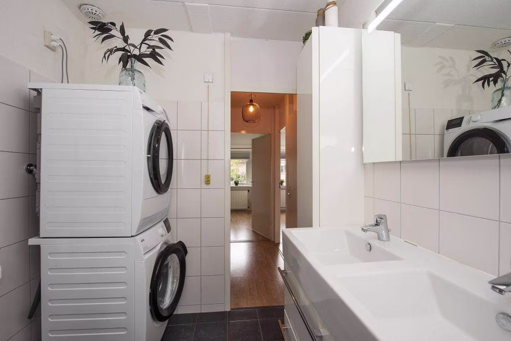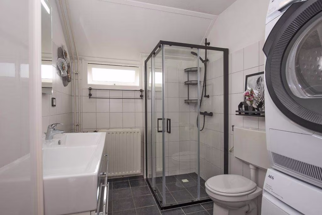 De badkamer is verrassend ruim en beschikt over een douchecabine, wastafelmeubel, tweede toilet en ruimte voor een wasmachine en droger. Met maar liefst vier slaapkamers is er ruimte genoeg voor het hele gezin, werken vanuit huis of het creëren van een hobbykamer.