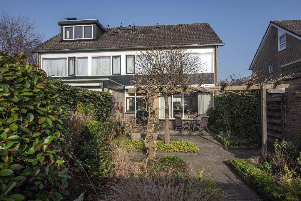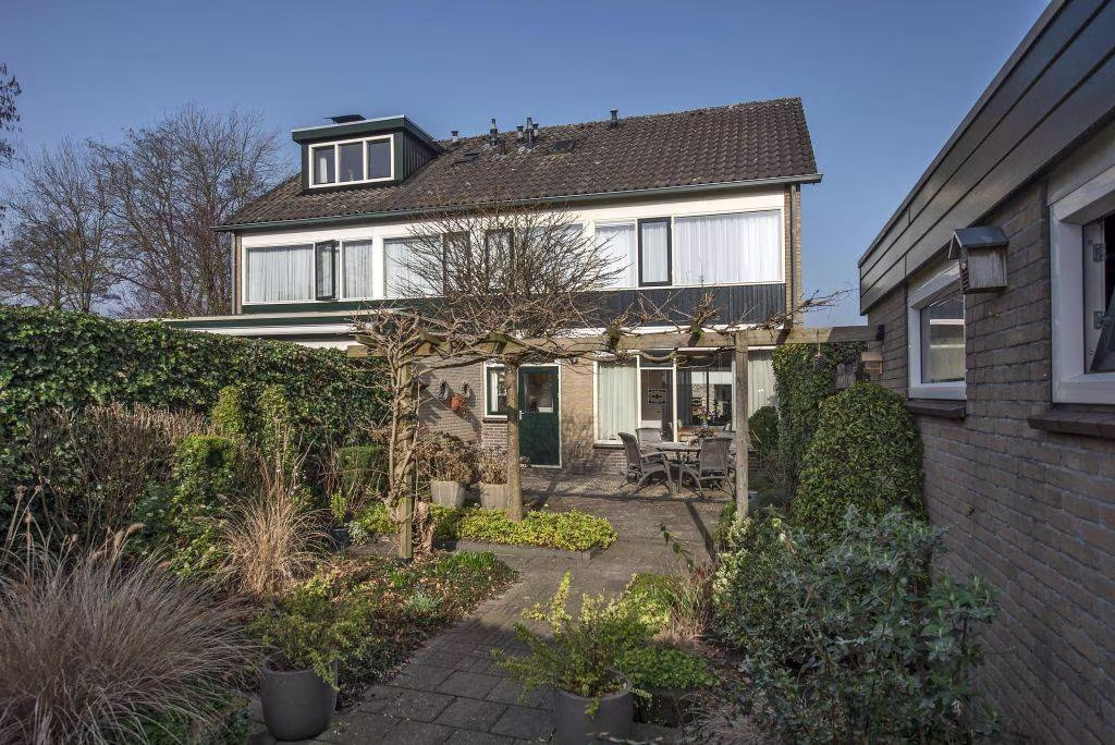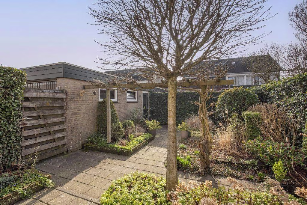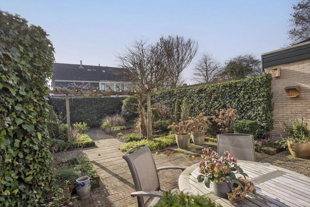 Achter de woning ligt een fijne, groene achtertuin waar je in alle rust kunt genieten van het buitenleven. De tuin biedt ruimte voor meerdere zitplekken en is een prettige plek om te ontspannen, te tuinieren of samen buiten te eten op een zonnige dag.