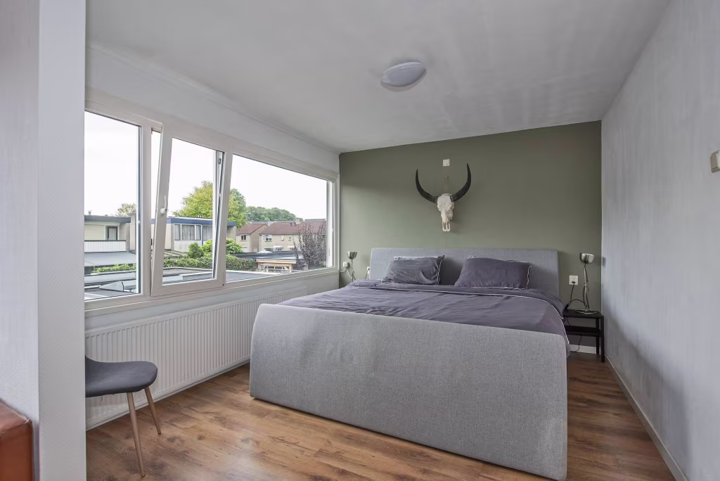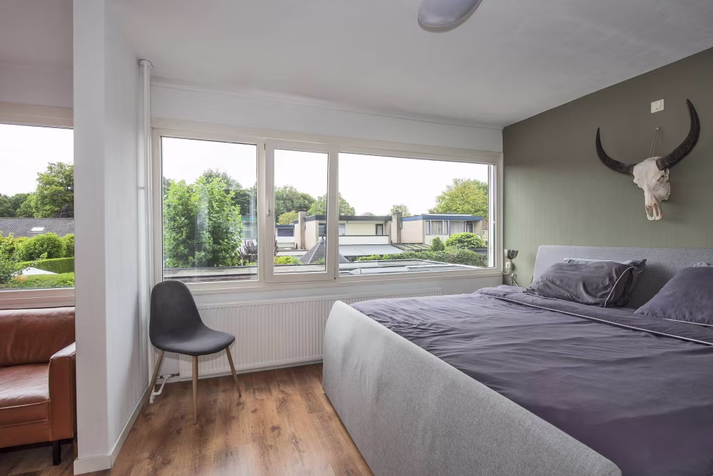 - De slaapkamers op de 1e verdieping zijn allen voorzien van kunststof kozijnen met HR++ beglazing en rolluiken;