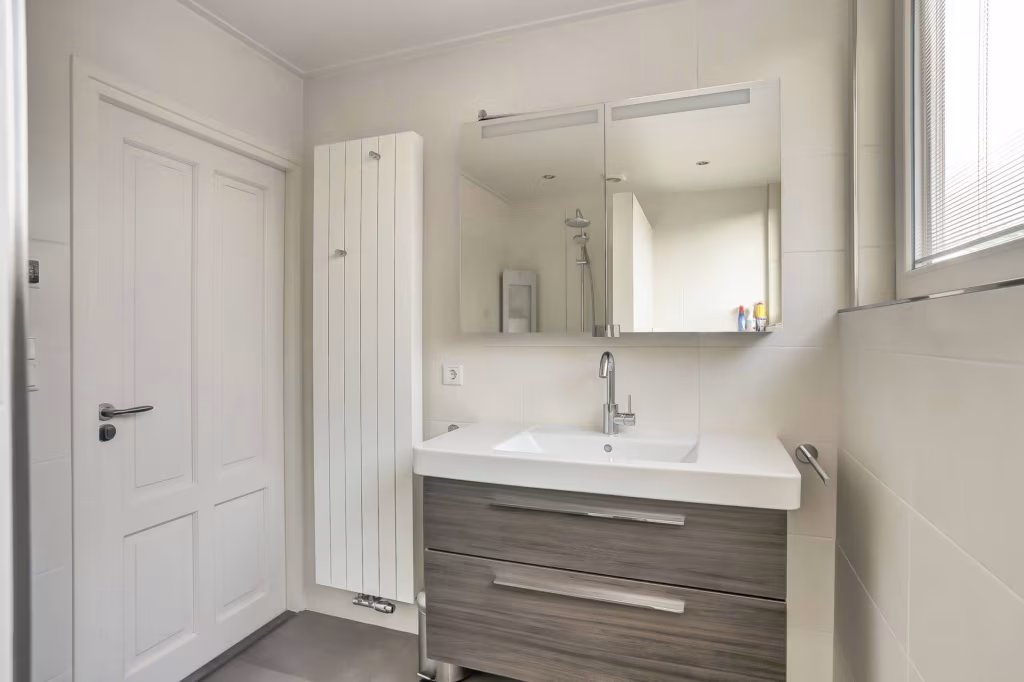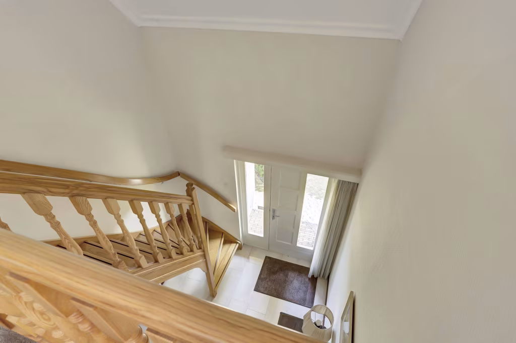 De overloop geeft toegang tot drie slaapkamers, waarvan de grootste beschikt over vaste kasten en een balkon. De moderne badkamer is uitgerust met een wastafelmeubel, designradiator, toilet en een inloopdouche met sunshower.