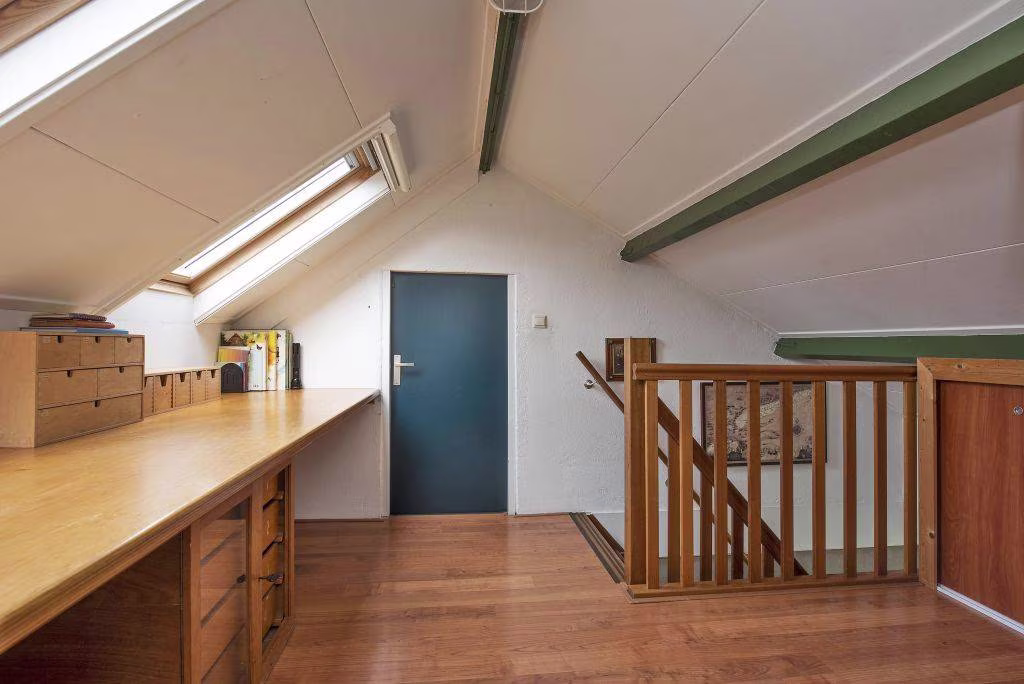 Via de trap in de hal bereik je de eerste verdieping. Hier kom je uit op de overloop met toegang tot twee slaapkamers. Deze kamers zijn ideaal als logeerkamer, hobbyruimte of bijvoorbeeld een rustige werkplek. Daarnaast is er nog een ruime bergzolder aanwezig waar je eenvoudig spullen kunt opbergen die je niet dagelijks nodig hebt.