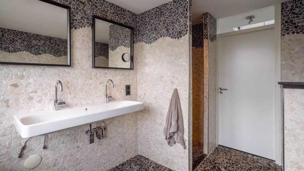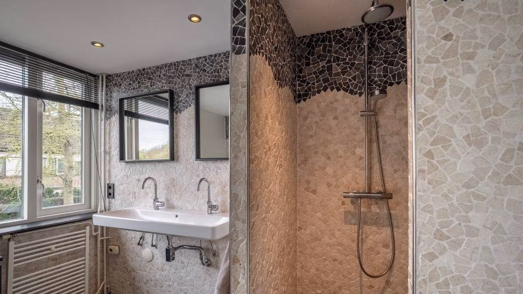 De overloop geeft toegang tot drie ruime slaapkamers. De moderne badkamer is compleet ingericht met een ligbad, inloopdouche, dubbel wastafelmeubel en een toilet.