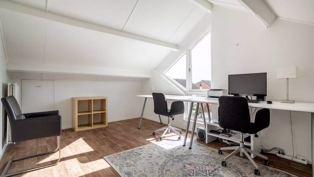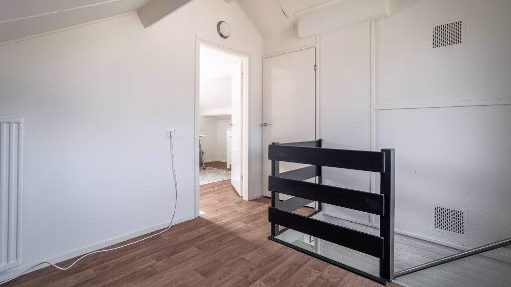 Via een vaste trap bereik je de overloop, ruime berging met opstelplaats cv-ketel, ruime vierde slaapkamer met vaste kasten. Tevens is er veel bergruimte achter de schuine kanten.