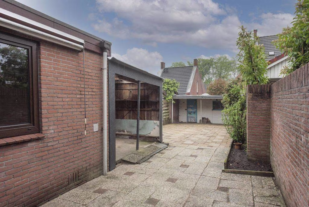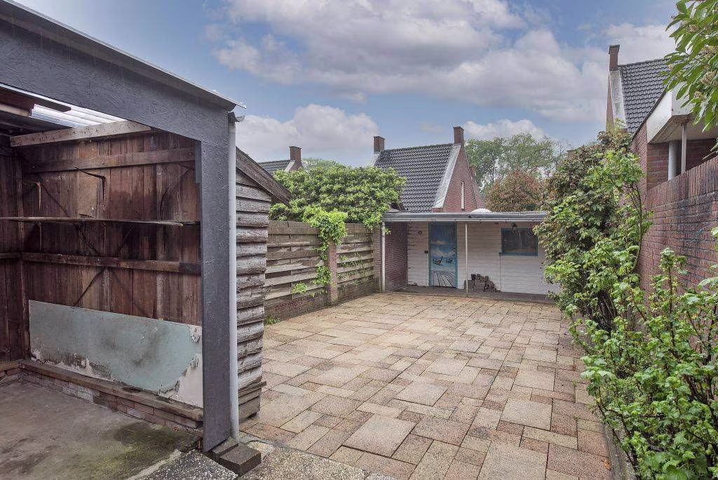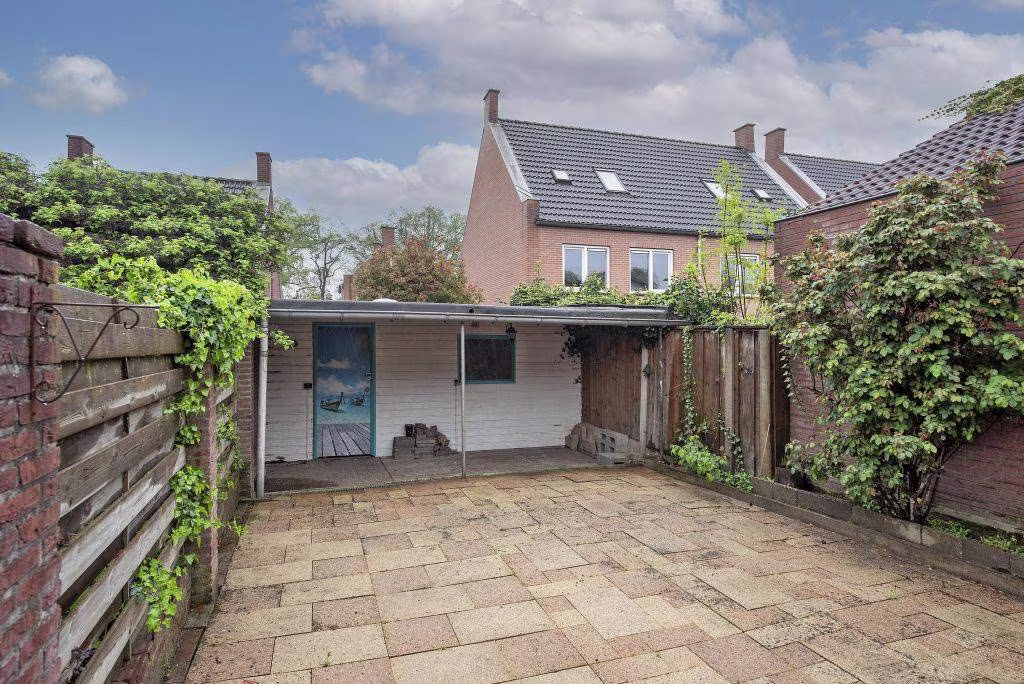 Je kunt de tuin betreden via de tuindeur in de bijkeuken of via de handige poort aan de zijkant van de woning. Beide leiden je naar de beschutte, onderhoudsvriendelijke, betegelde tuin. De tuin beschikt over twee overdekte zit- of opbergruimtes: praktisch gebouwd, maar ideaal om spullen droog op te bergen of om naar eigen smaak op te knappen. Achterin de tuin bevindt zich een overkapping met daarachter een extra berging. Een fijne plek om te zitten en perfect voor tuingereedschap, fietsen of andere opslag.