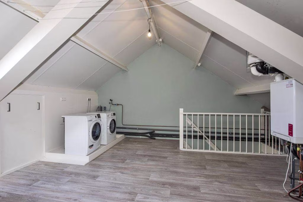 2e verdieping: via vaste trap bereikbare ruime zolderverdieping met dakraam, bergruimte, opstelling CV-ketel en nog voldoende plek voor een werk-/hobbyplek of 4e slaapkamer.