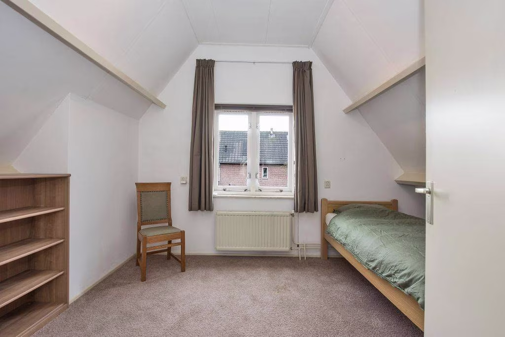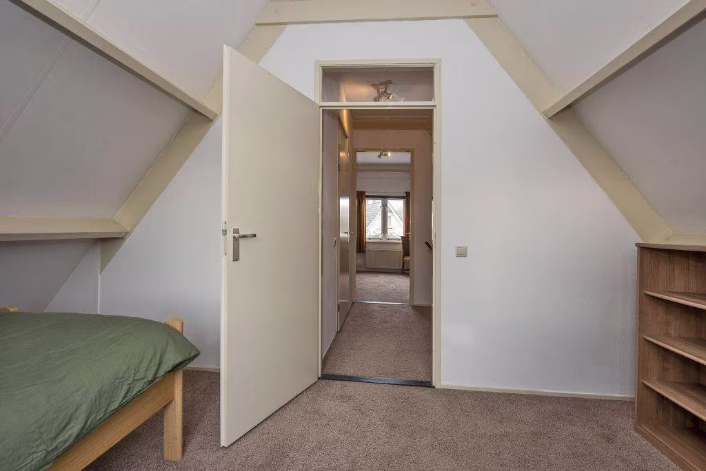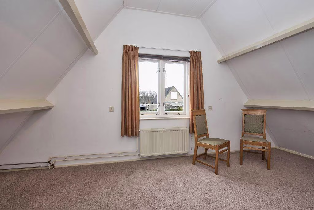 De ruime overloop van de eerste verdieping bereik je via de vaste trap bekleed met vloerbedekking. Hier op de overloop ervaar je direct de hoogte van het dak dat de verdieping geeft. Via de overloop kom je uit bij de twee slaapkamers en de tweede badkamer. Aan de voor- en achterzijde liggen twee volwaardige slaapkamers met schuine daklijnen, wat de ruimtes gezellig en knus maakt. De kamers hebben beide een prettig formaat en dankzij de ramen komt er voldoende daglicht binnen. Ze zijn flexibel te gebruiken als slaap-, werk- of hobbykamer. Tussen de slaapkamers in ligt de tweede badkamer van de woning. Deze ruimte is functioneel ingedeeld met een douche, wastafelmeubel en spiegel. Een fijne praktische verdieping, die veel mogelijkheden biedt voor je eigen wensen.