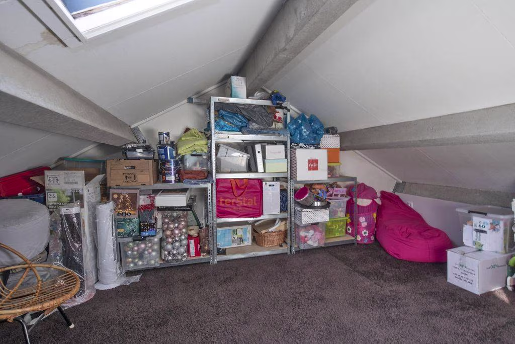 Tweede verdieping: zolder, bereikbaar via vlizotrap.