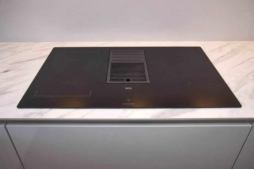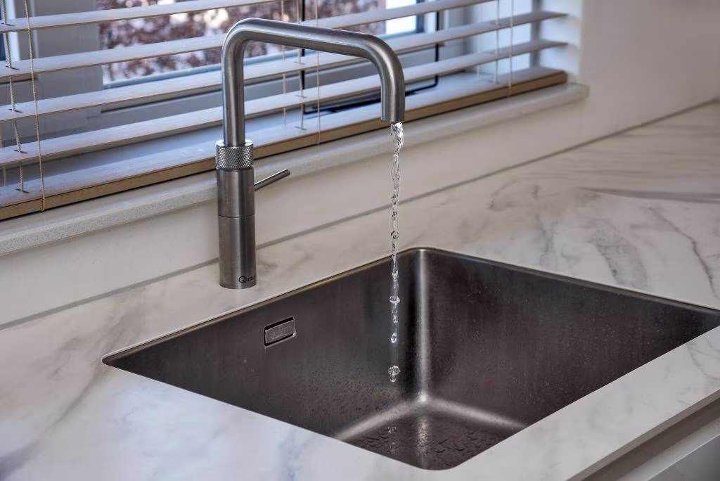 - Inbouwapparatuur keuken: inductiekookplaat met geïntegreerde afzuiging, koelkast, vriezer, vaatwasser, oven pyrolyse, combi-oven/magnetron en quooker kraan;
