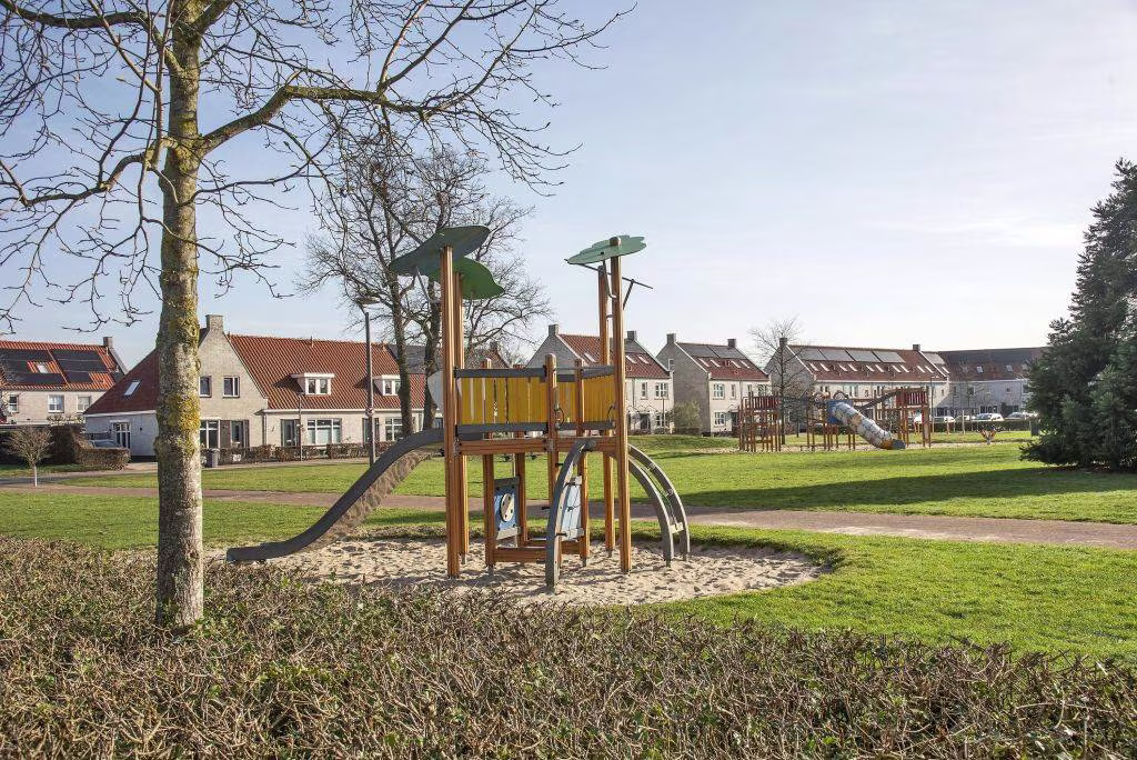 - Aan de voorzijde vrij uitzicht over een groot plantsoen met speelgelegenheid;