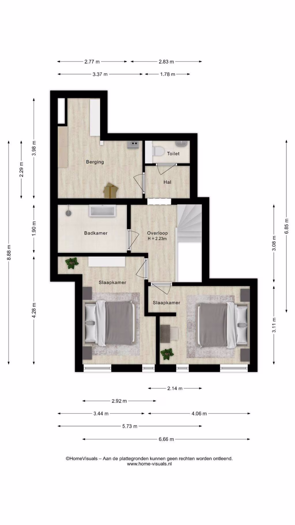 Boven vind je twee comfortabele slaapkamers en een ruime badkamer. Dankzij de efficiënte indeling heb je veel extra ruimte voor bijvoorbeeld een hobbykamer, kantoor of extra opbergruimte.