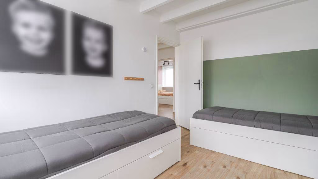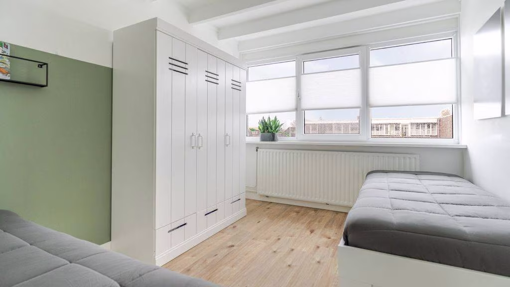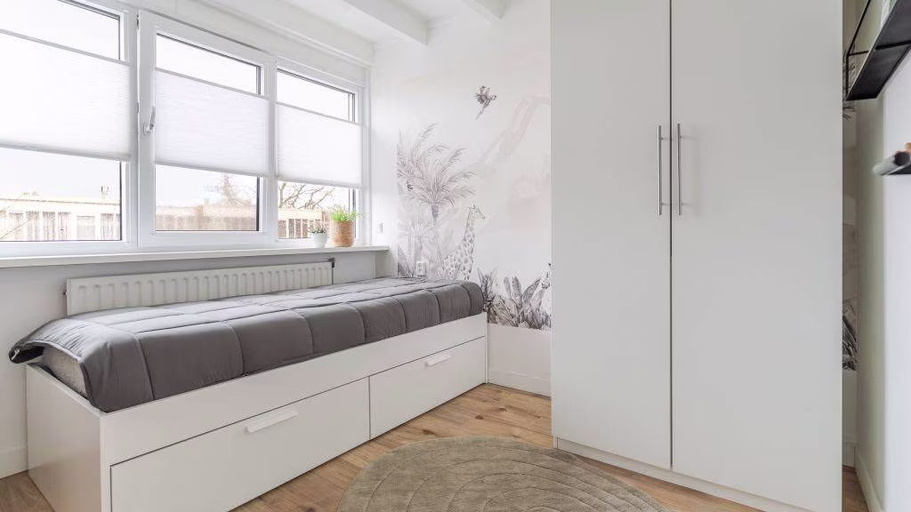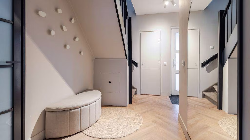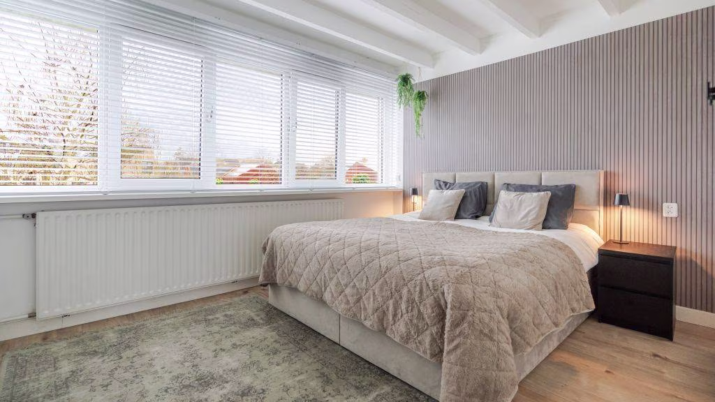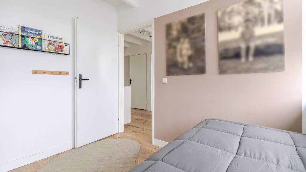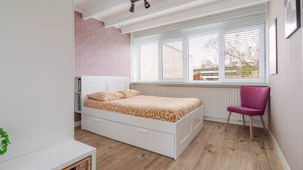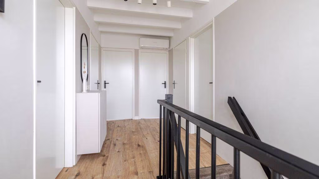 De ruime overloop geeft toegang tot vier slaapkamers. De moderne badkamer is compleet uitgerust met een ligbad, inloopdouche, wastafelmeubel en toilet. Daarnaast beschik je op deze verdieping over een praktisch cv-hok: een aparte berg-/technische ruimte met de cv-ketel en meerdere legplanken. Ideaal voor extra opslag, handdoeken, schoonmaakspullen of voorraad — een echte bonusruimte die veel woningen niet hebben.