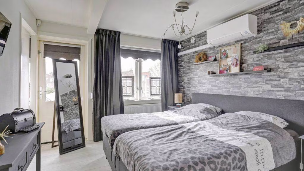 Twee slaapkamers waarvan één voorzien van airco (2023). Nette badkamer voorzien van inloopdouche, toilet en wastafel.