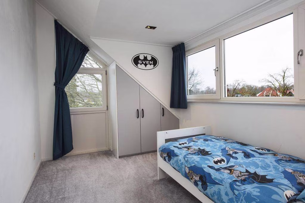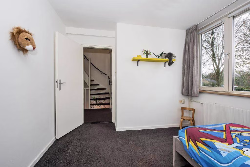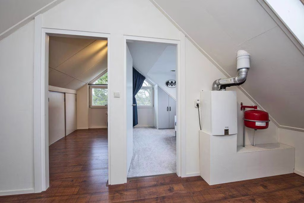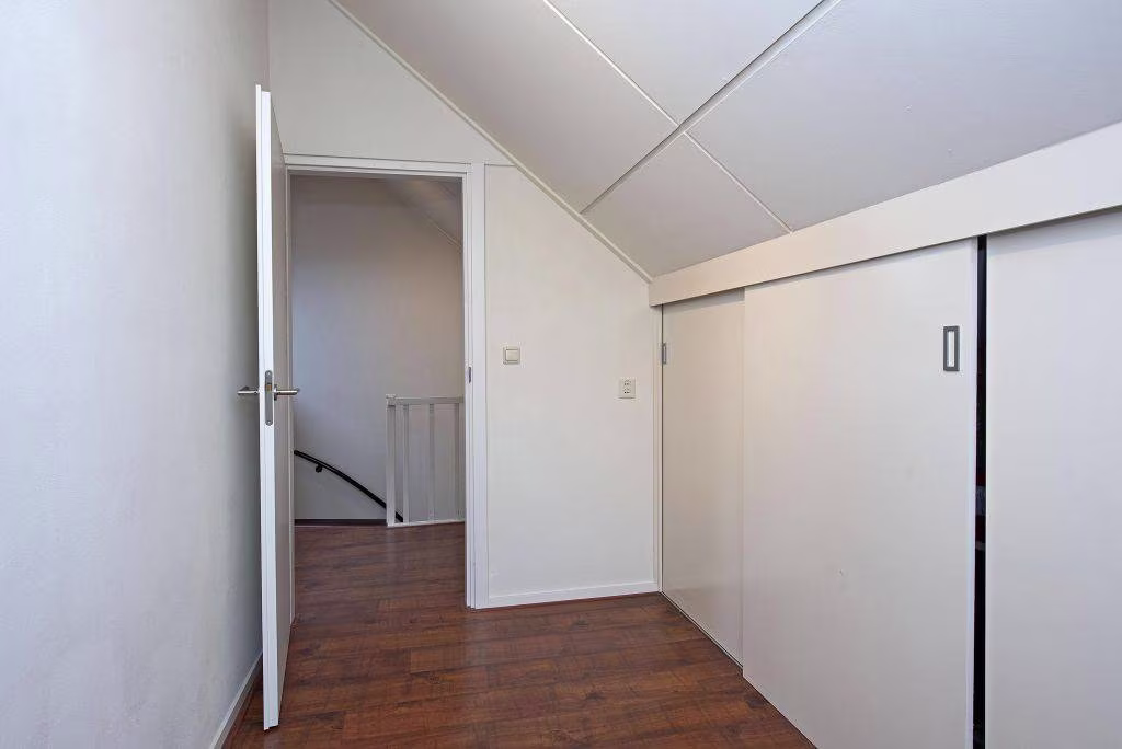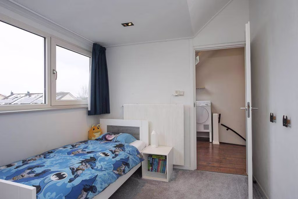 2e verdieping: via vaste trap bereikbare ruime overloop met bergruimte achter de knieschotten, wasmachine en droger opstelling CV-ketel, 4e slaapkamer met dakkapel (2020) en een op maat gemaakte kast, 5e slaapkamer (thans in gebruik als praktische strijkkamer) met grote bergkast.