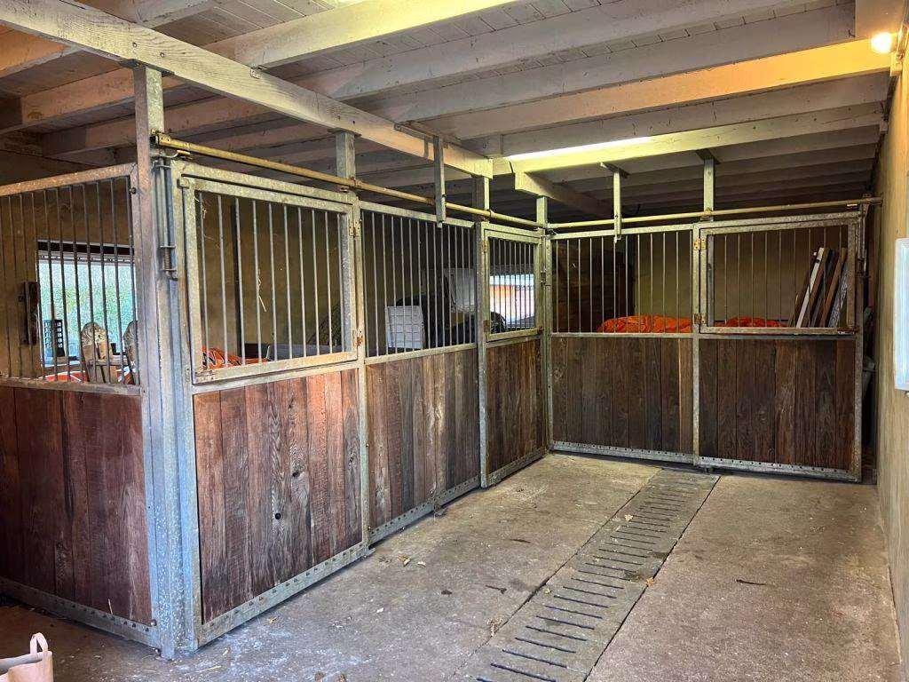 Het landhuis beschikt over een lange oprit met aan het einde een toegangspoort. Achter het huis strekt zich een royale tuin uit met een overkapping die aan de woning grenst. Een fijne plek om te genieten van lange zomeravonden of gezellig te borrelen met vrienden en familie. Verder vind je hier een vrijstaande berging en een garage, beide voorzien van water en elektra. Aan de berging grenst een carport, terwijl de garage voldoende ruimte biedt om de auto binnen te parkeren. Op het dak van de garage liggen bovendien 28 zonnepanelen, die bijdragen aan een duurzame energievoorziening.