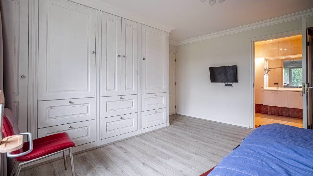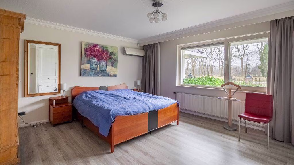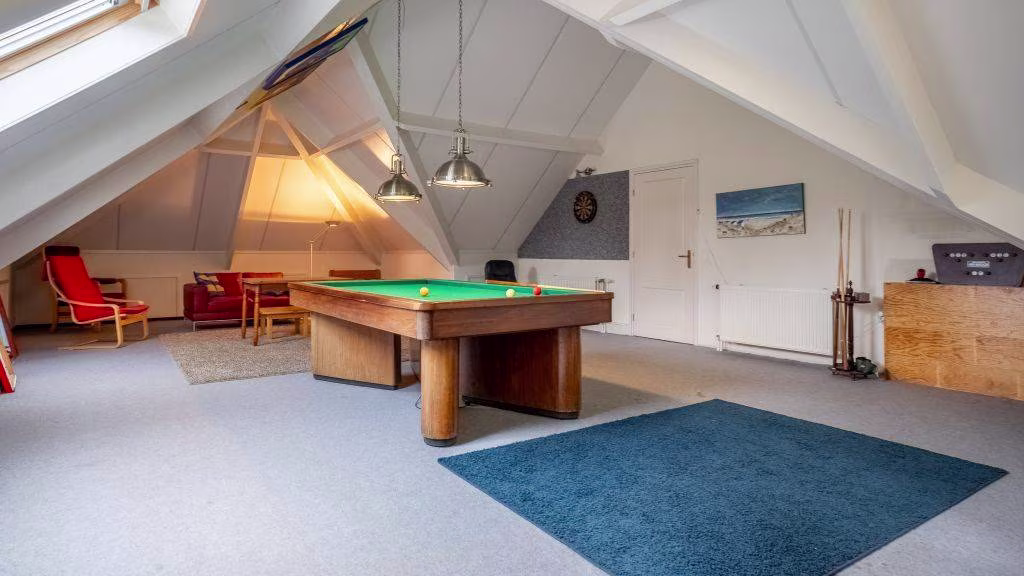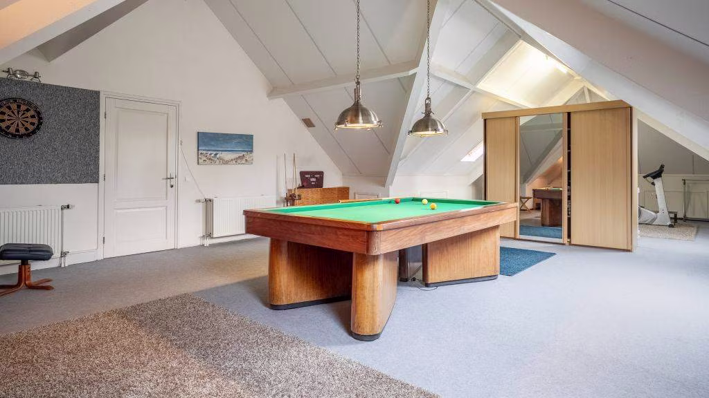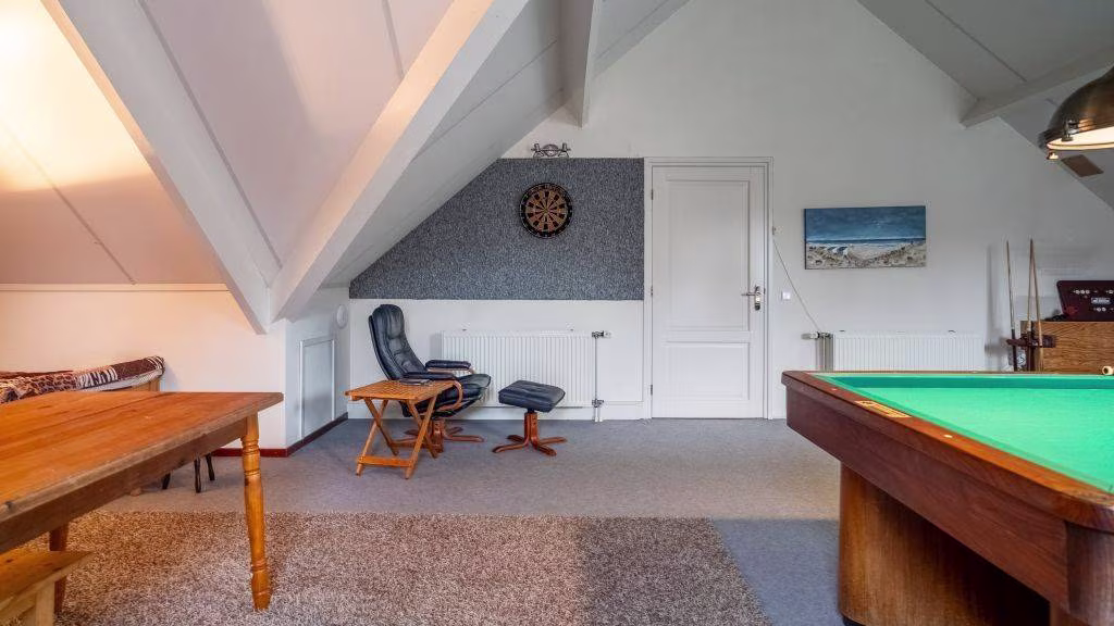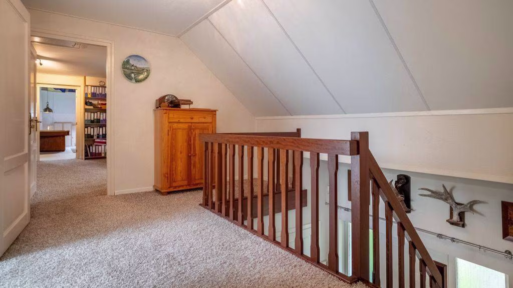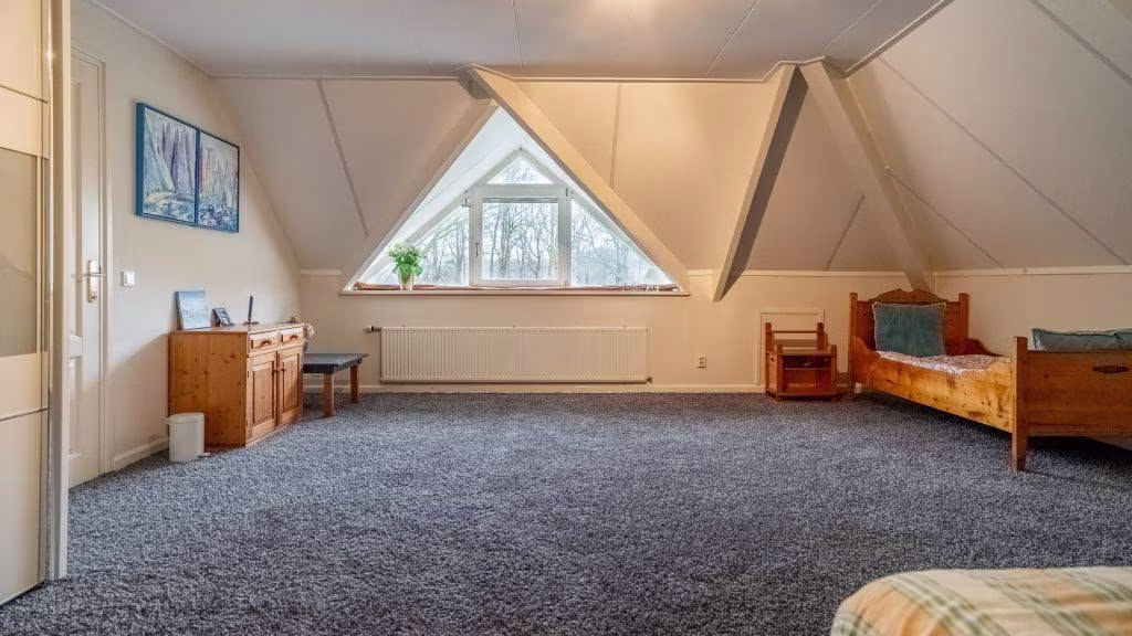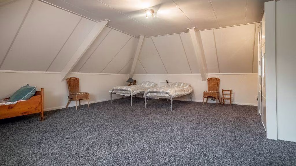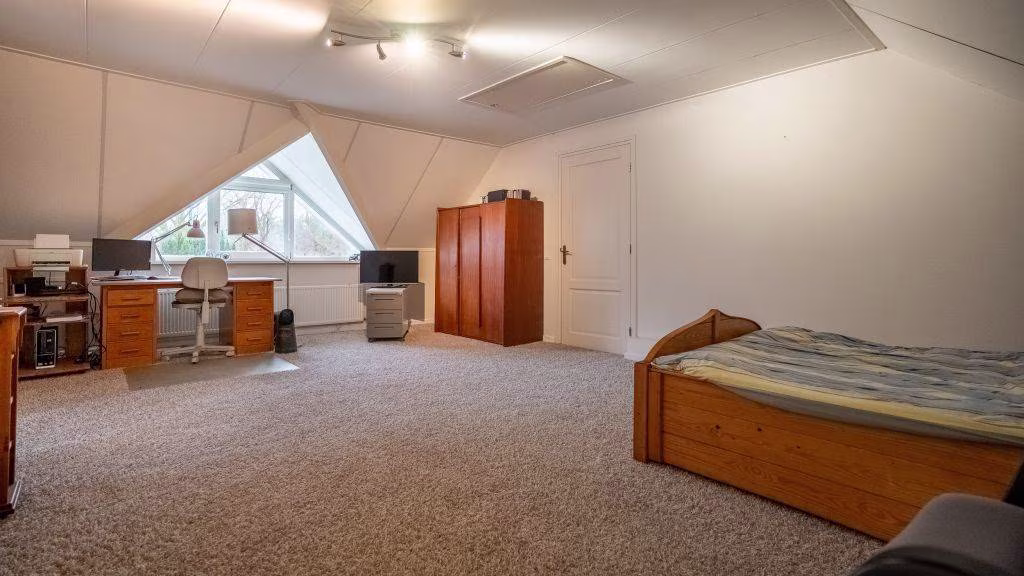 Op de verdieping bevinden zich drie ruime kamers (40, 38, 108 m²), waarvan één momenteel in gebruik is als hobbyruimte. Uiteraard kan deze ruimte eenvoudig worden ingericht als extra slaapkamer, werkkamer of speelkamer . De royale opzet biedt volop flexibiliteit voor diverse woonwensen.