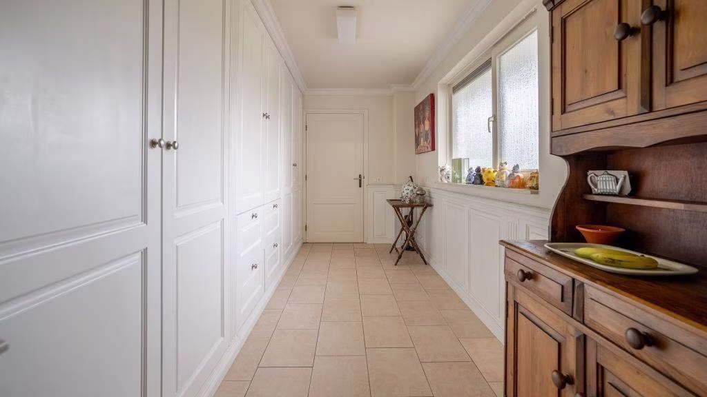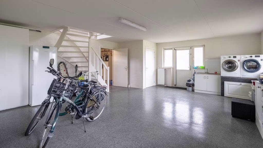 De royale woonkeuken met schiereiland is het hart van het huis: een perfecte plek voor gezellige diners en lange avonden tafelen. Aansluitend bevindt zich een praktische en ruime bijkeuken met volop bergruimte. Achter de bijkeuken en dubbele garage is een grote hobbyruimte met eigen toilet gelegen. De woning is levensloopbestendig dankzij een slaapkamer en badkamer op de begane grond – ideaal voor gelijkvloers wonen of het ontvangen van gasten.