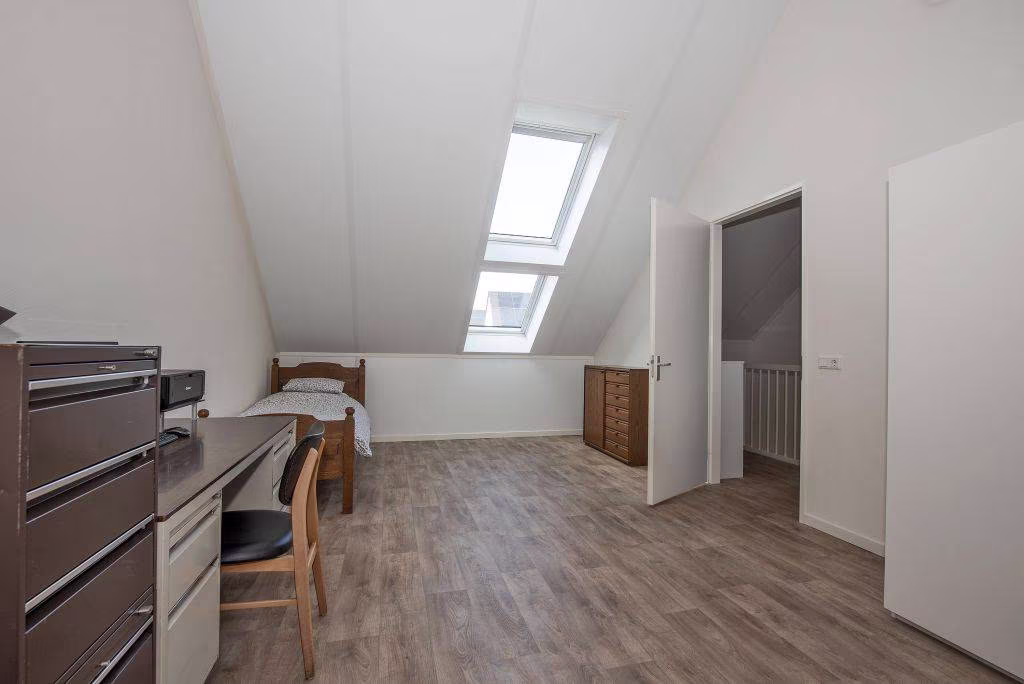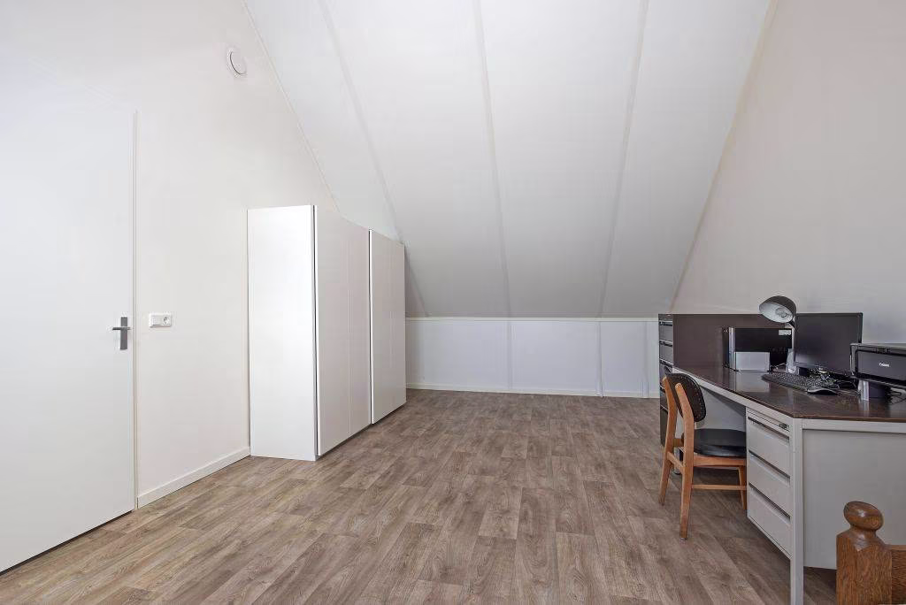 Op de eerste verdieping is er een ruime overloop, geschikt voor bijvoorbeeld een werkplek of hobbyruimte. Daarnaast bevindt zich hier een royale slaapkamer mét dakraam en een praktische berging. De verdieping biedt flexibiliteit en kan eenvoudig worden aangepast aan jouw woonwensen.