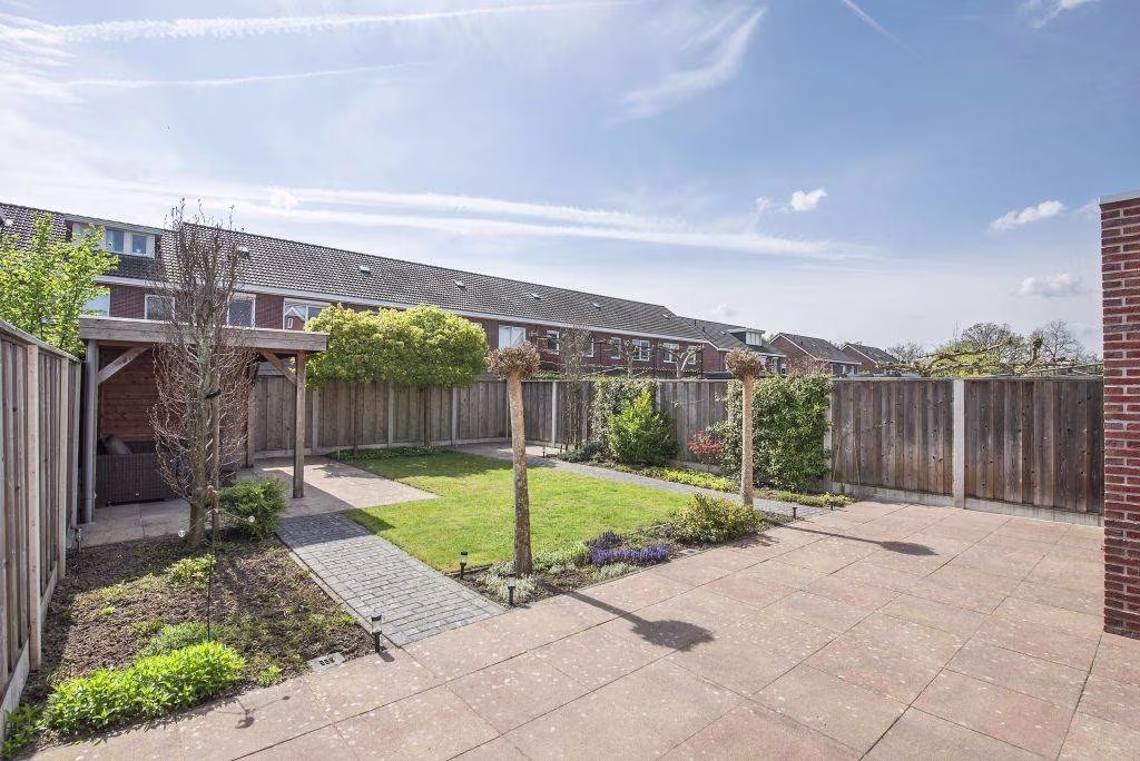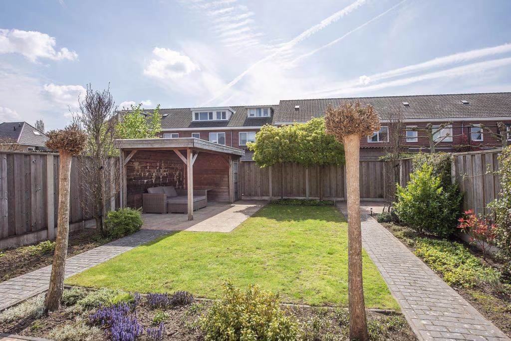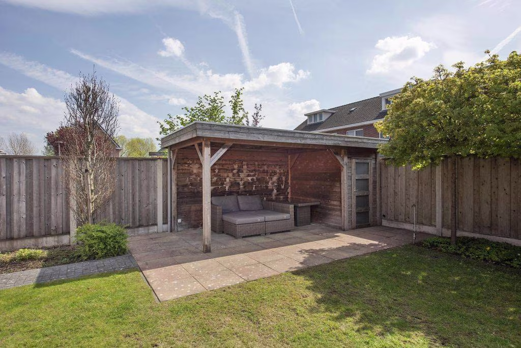 De zonnige tuin, gelegen op het zuiden, vormt een fijne plek om van het buitenleven te genieten. Met meerdere terrassen is er altijd een comfortabele plek in de zon of schaduw te vinden. Dankzij de omliggende bomen ervaar je hier in de zomer veel privacy en een groene, beschutte sfeer. Bovendien beschikt de woning over een garage en een overkapping in de achtertuin, wat het wooncomfort en gebruiksgemak compleet maakt.