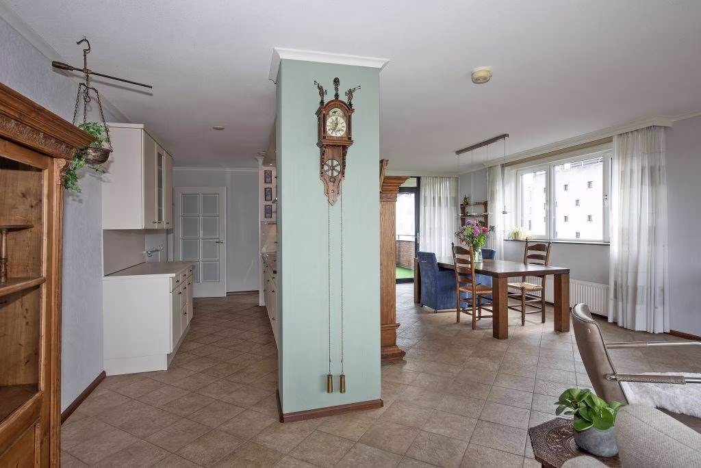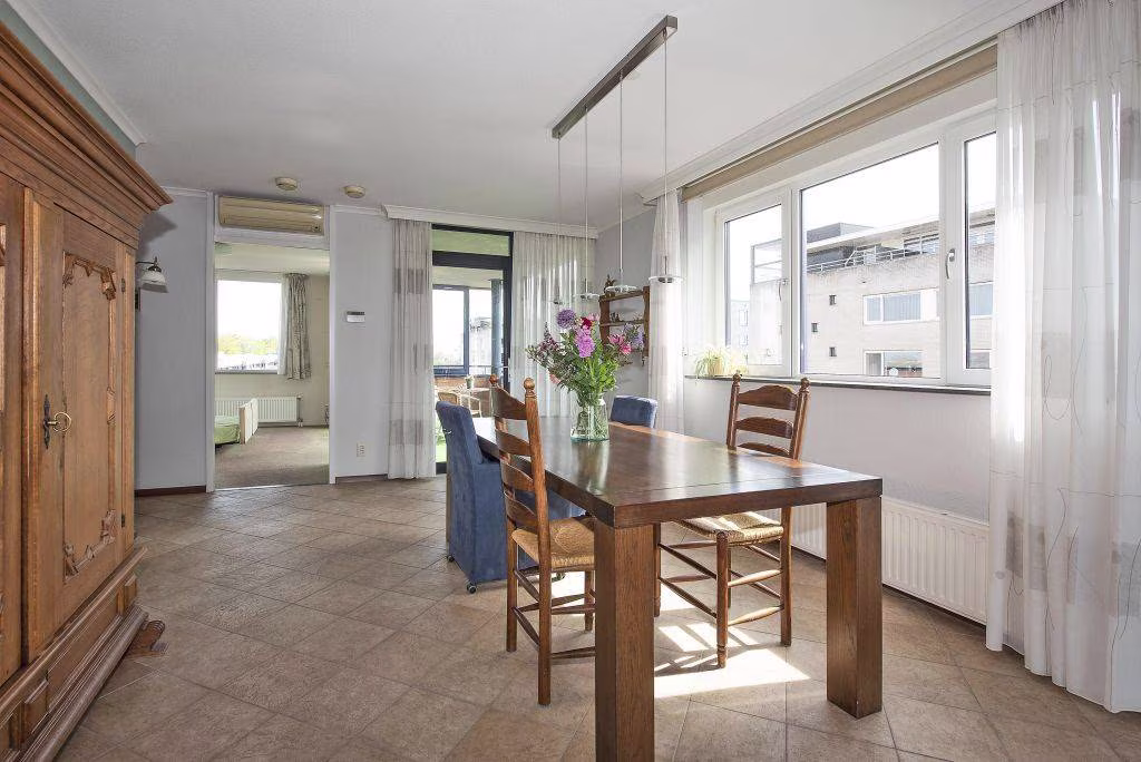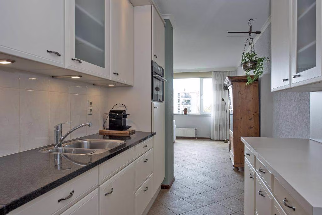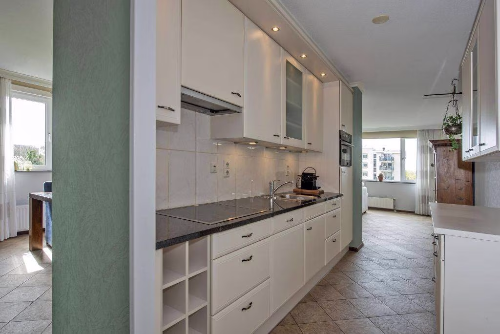 Bij binnenkomst merk je het direct: dit appartement voelt royaal aan. De woonkamer vormt het hart van het geheel, een prettige leefruimte waar je eenvoudig een gezellige zithoek en eethoek creëert. Dankzij de indeling en de lichtinval voelt het geheel open en aangenaam. Een plek waar je de dag rustig begint en ’s avonds ontspannen afsluit. De keuken sluit mooi aan op de leefruimte en is voorzien van diverse inbouwapparatuur.