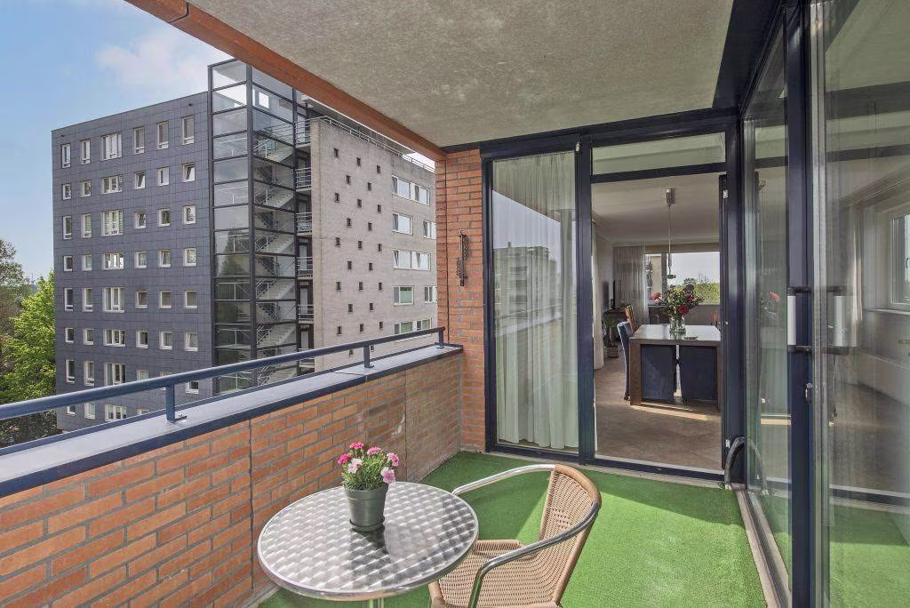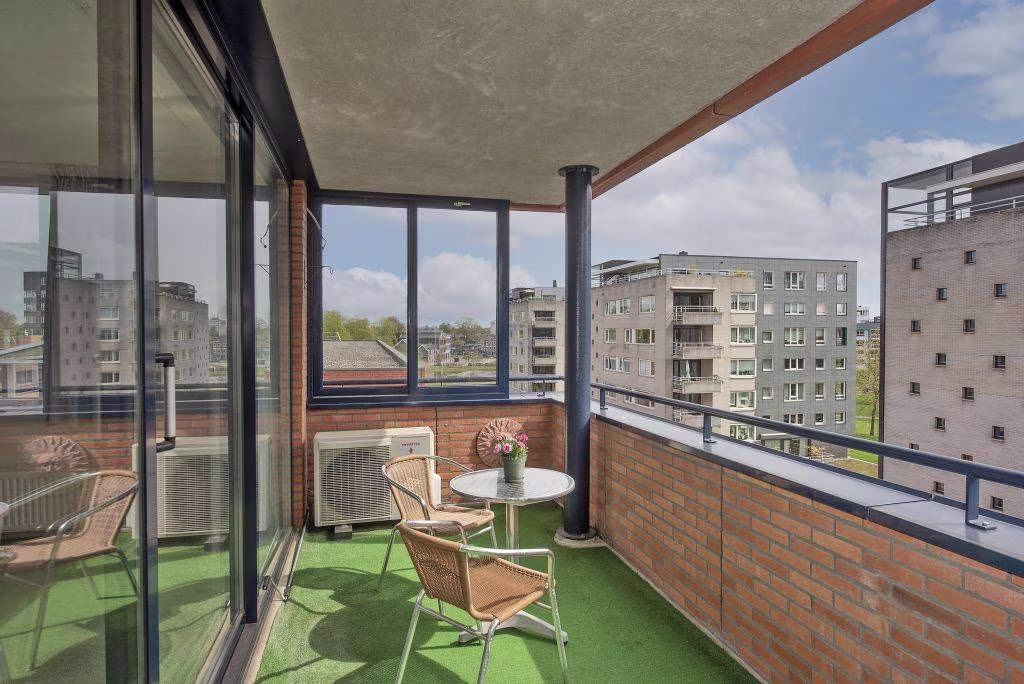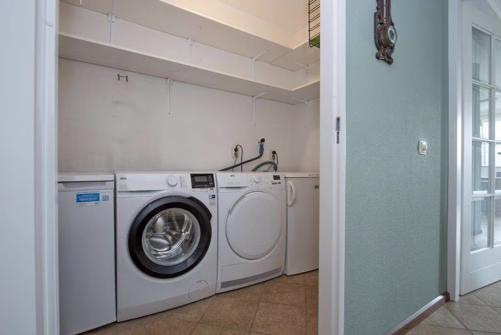 Daarnaast is er een fijn balkon aanwezig, toegankelijk via de woonkamer en slaapkamer, waar je even naar buiten stapt voor een kop koffie of om van de buitenlucht te genieten. Ook is er een inpandige berging, momenteel in gebruik als wasruimte.