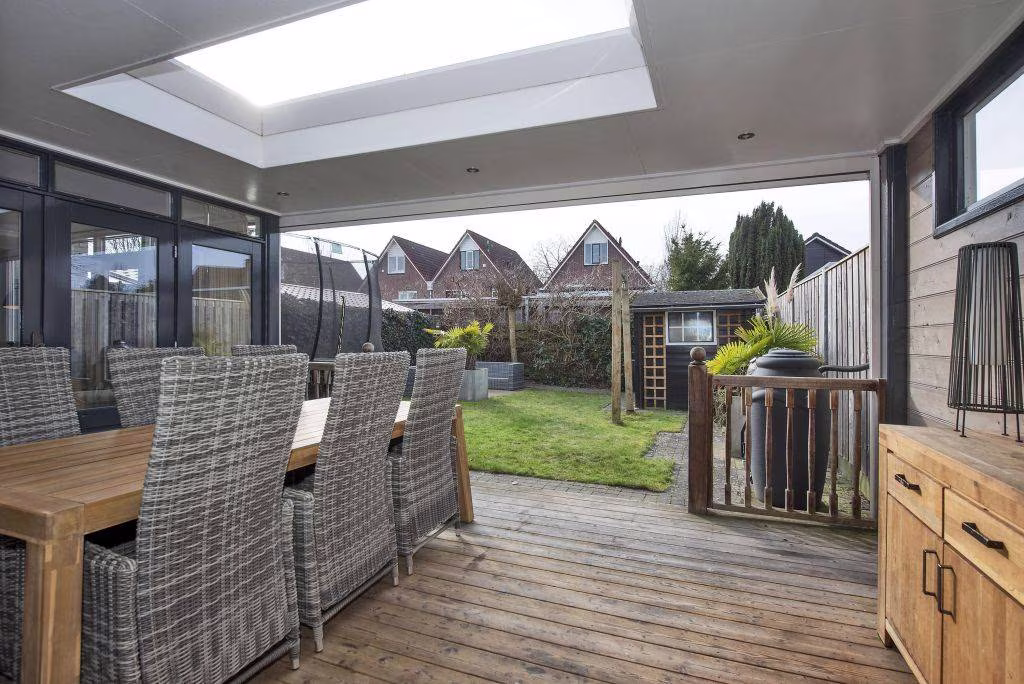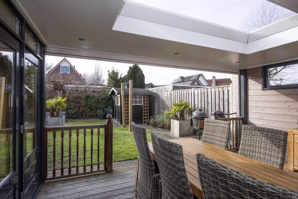 Gelegen in een kindvriendelijke woonwijk, met in de directe nabijheid schoolvoorzieningen, uitvalswegen en het buitengebied, vind je aan de Stroom-Eschlaan deze geschakelde en uitgebouwde gezinswoning. De woning biedt verrassend veel leefruimte, met name op de begane grond, en is daardoor ideaal voor wie op zoek is naar comfort, ruimte en veelzijdigheid. Op de eerste verdieping bevinden zich vier (!) kamers, waarvan drie volwaardige slaapkamers, en een moderne badkamer die van alle gemakken is voorzien. De ruime zolder biedt volop indelingsmogelijkheden: denk aan een extra slaapkamer, werkruimte of hobbykamer – hier kun je alle kanten op. De overkapping, voorzien van sfeervolle spots, heater en lichtstraat, is een absolute plus: hier zit je het hele jaar door heerlijk beschut, terwijl de screens het mogelijk maken om de ruimte volledig af te sluiten.