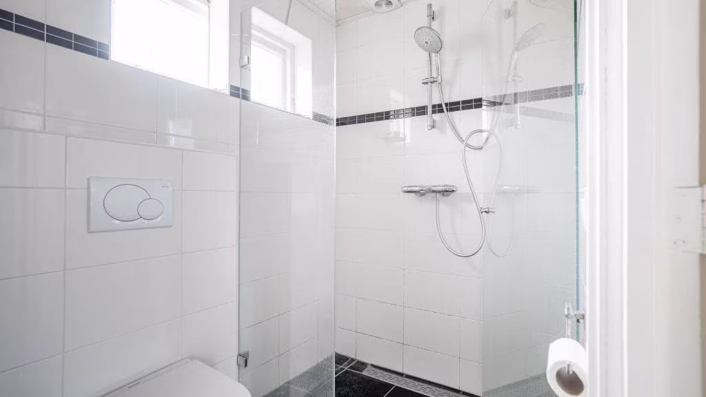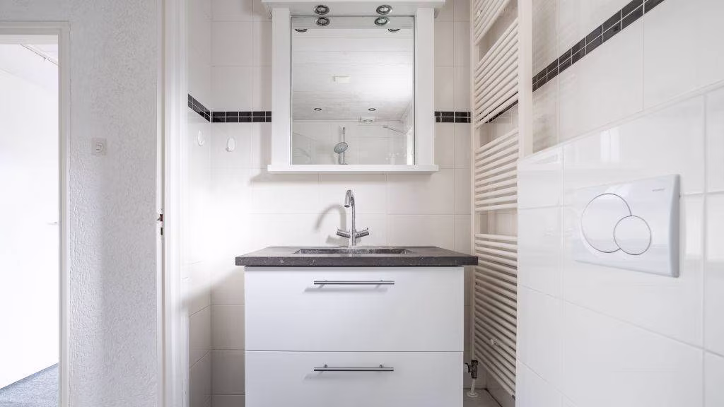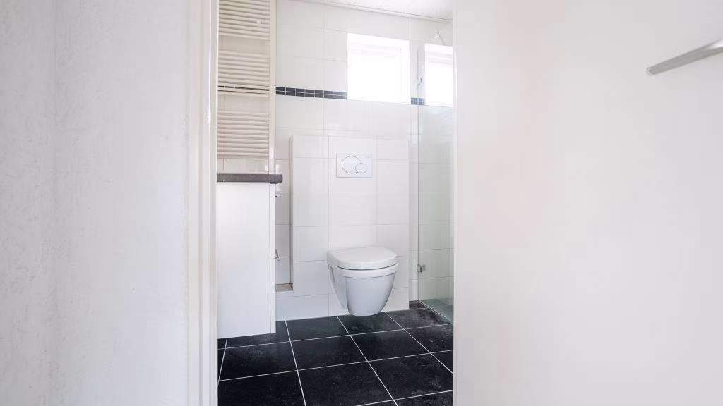 Overloop naar drie ruime slaapkamers waarvan twee voorzien van vaste kasten. Badkamer met douche, toilet en wastafel.