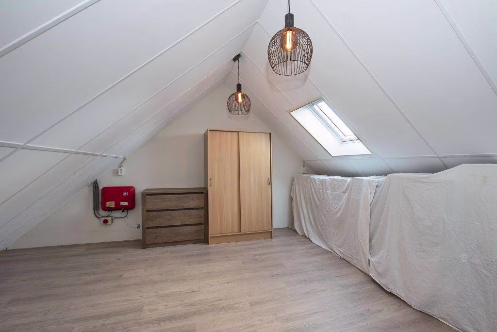 Tweede verdieping: bereikbaar via vaste trap; mogelijkheid voor een vierde slaapkamer of thuiswerkplek. Tevens bevindt zich hier de wasmachineaansluiting.