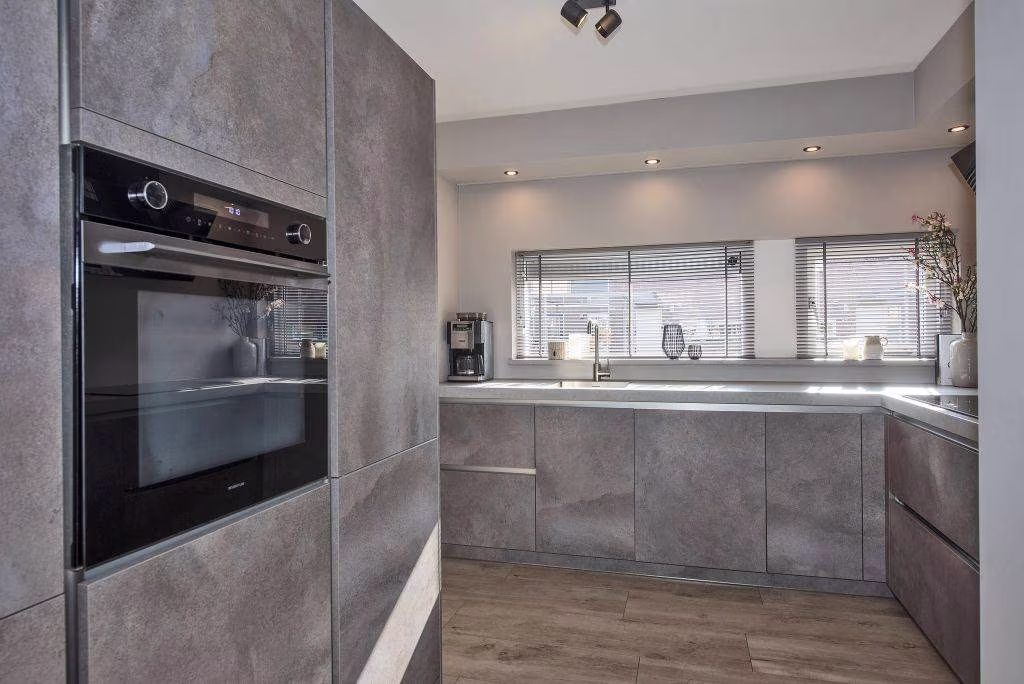 Aan de voorzijde van de woning bevindt zich de keuken. De keuken is voorzien van inbouwapparatuur en biedt een prettige plek om te koken terwijl je contact houdt met de rest van de leefruimte.