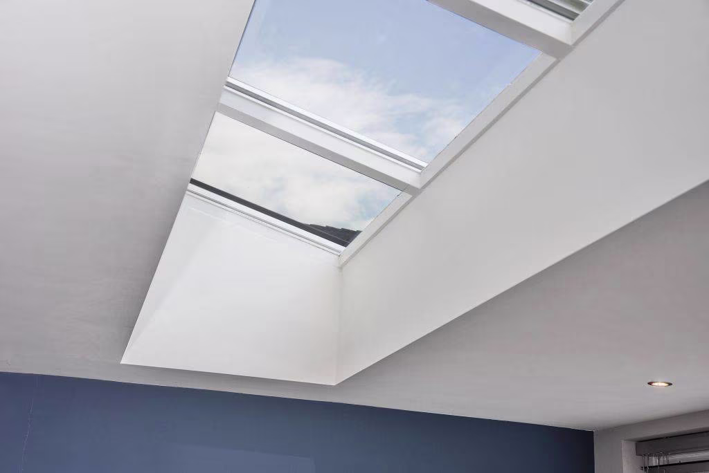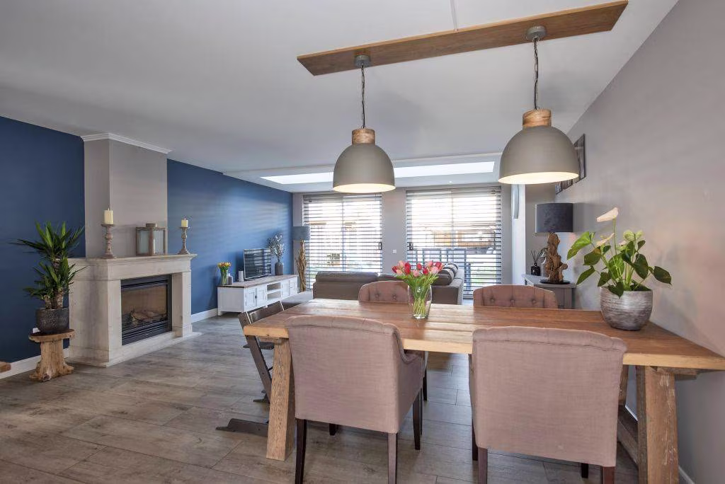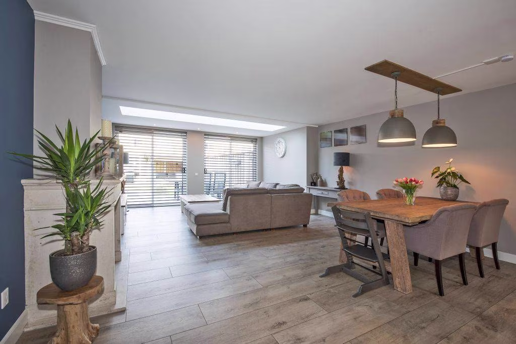 Wat direct opvalt is de lichtstraat in het dak van de uitbouw, waardoor er extra veel daglicht de woonkamer binnenvalt. Dit zorgt voor een prettige, open sfeer en maakt de leefruimte nog lichter en ruimtelijker.