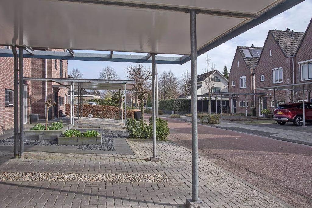 Aan de voorzijde van de woning bevindt zich bovendien een eigen oprit met carport, waardoor je de auto gemakkelijk op eigen terrein en overdekt kunt parkeren.