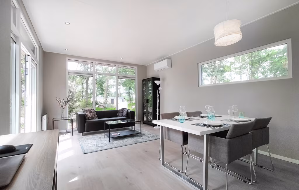 Dit sfeervolle en duurzame chalet is perfect geïsoleerd, waardoor je het hele jaar door kunt genieten van alle comfort. Met kunststof kozijnen en dubbel glas in combinatie met airconditioning en verwarming ben je verzekerd van een aangename temperatuur, ongeacht het seizoen. Deze woning beschikt over twee knusse slaapkamers en beschikt daarnaast over eigen parkeergelegenheid.