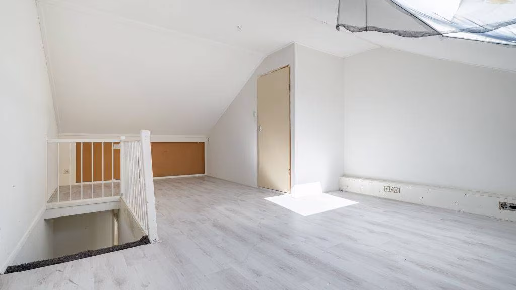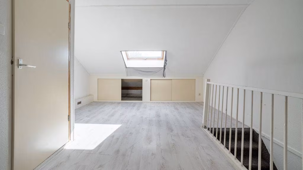 Middels vaste trap naar grote zolder/berging met dakraam en opstelplaats cv-ketel en wasmachine, deze ruimte is zeer geschikt voor het realiseren van een 4e slaapkamer.