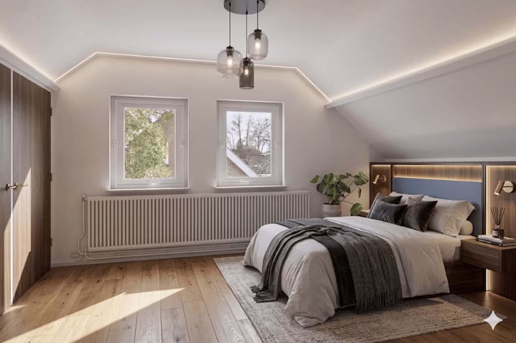 Via luiken in het plafond van de twee grootste kamers is de zolderverdieping bereikbaar, ideaal als praktische opslagruimte.