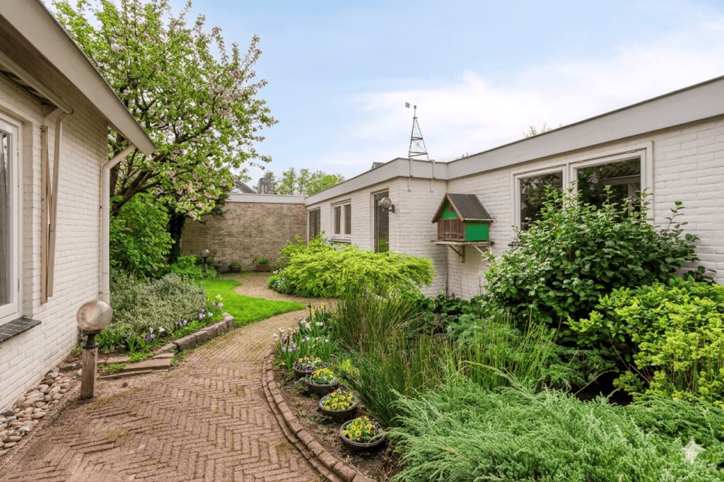Rondom de woning ligt een ruime tuin met een brede oprit en een zonnig terras met veel privacy. De combinatie van groen en bestrating biedt volop mogelijkheden om op verschillende momenten van de dag te genieten van zon of schaduw. De woning ligt in een rustige woonomgeving in Borne, met groenvoorzieningen en wandelmogelijkheden in de directe omgeving. Het centrum van Borne, openbaar vervoer en uitvalswegen richting Hengelo en Enschede zijn snel bereikbaar.