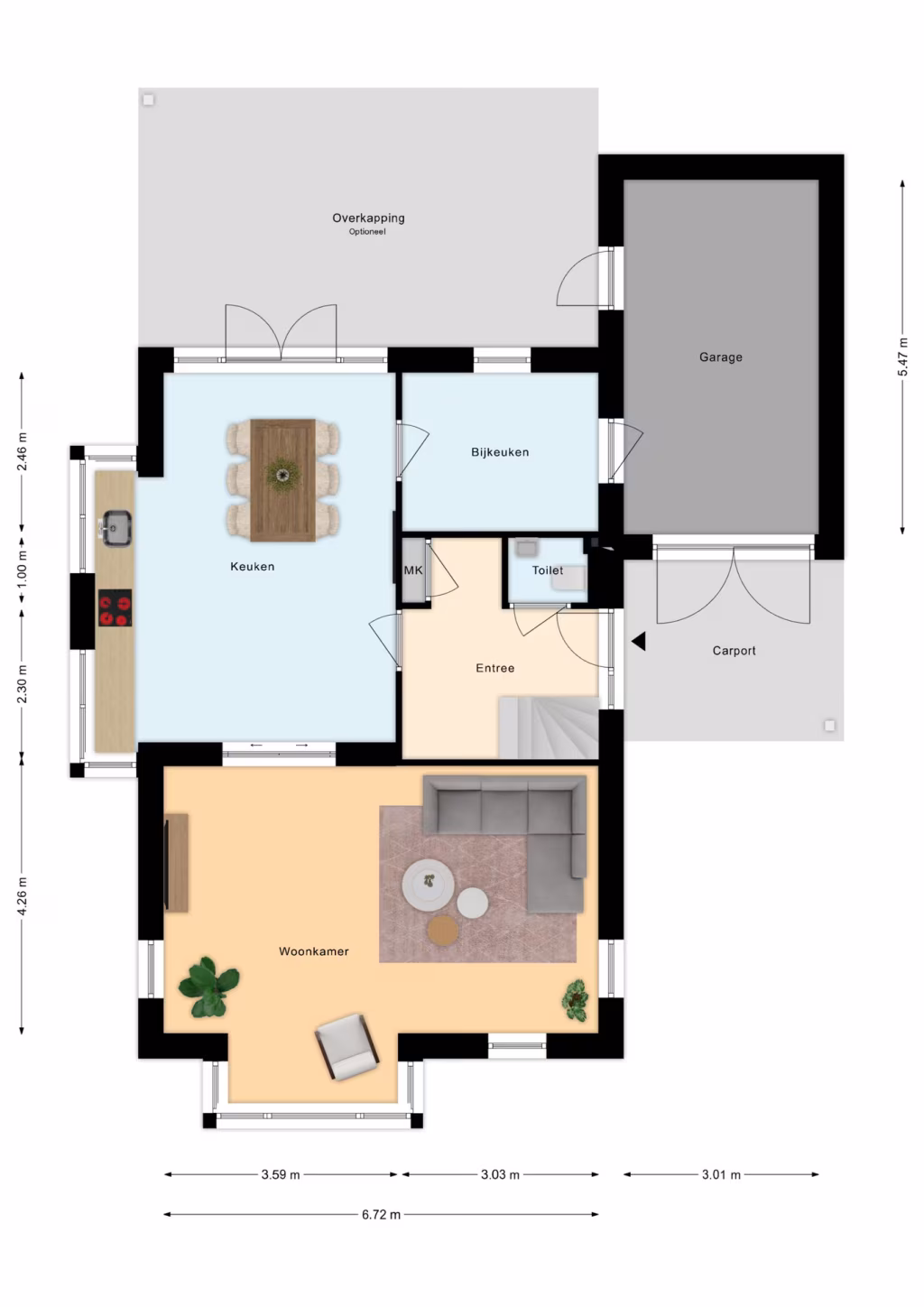 Hierbij kun je onder andere denken aan een uitbouw aan de achterzijde van de woning van 1,2 meter of zelfs 2,4 meter. Ook kan je kiezen voor een terrasoverkapping! Eventuele andere opties kun je in de meer- en minderwerklijst vinden.
