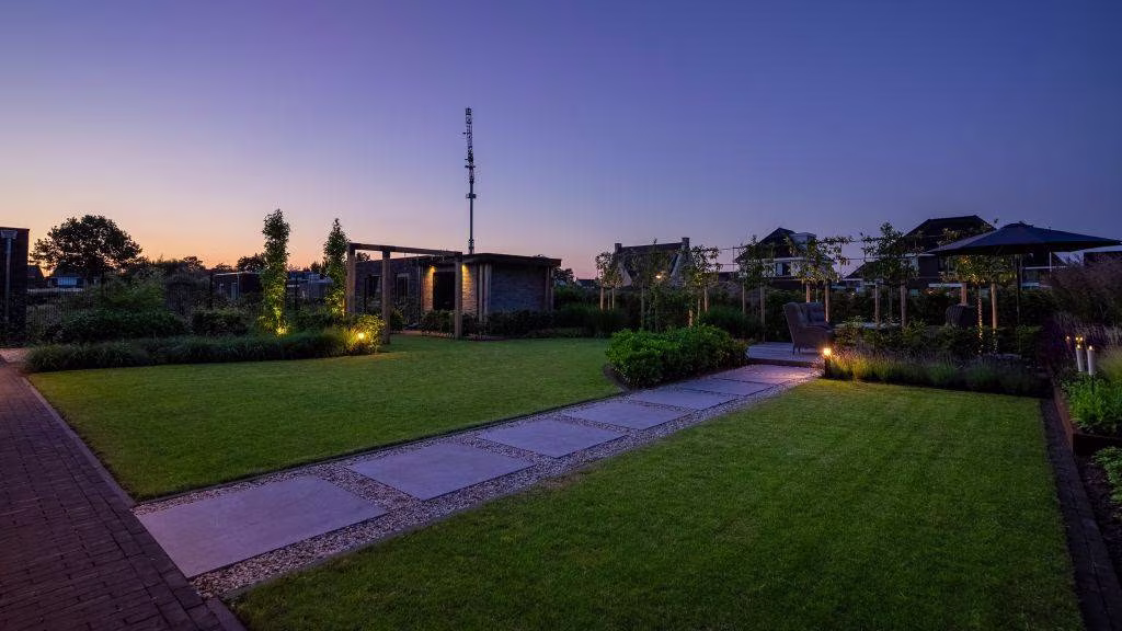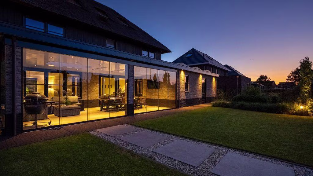 De tuin is een absolute eyecatcher. Onder architectuur aangelegd, sfeervol verlicht en perfect in balans tussen groen en moderne bestrating. De luxe overkapping met glazen schuifpuien is geïsoleerd en voorzien van inbouwspots, geïntegreerde speakers en heaters, waardoor dit een volwaardig verlengstuk van de woonkamer is. Een plek waar elk seizoen optimaal benut wordt. Daarnaast is er een tuinhuis aanwezig voor extra opslag.