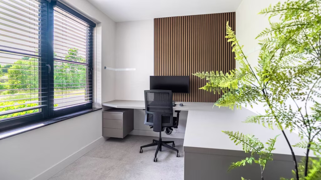 Vanuit de hal is tevens een kantoorruimte bereikbaar, ideaal als werk- of studeerkamer.