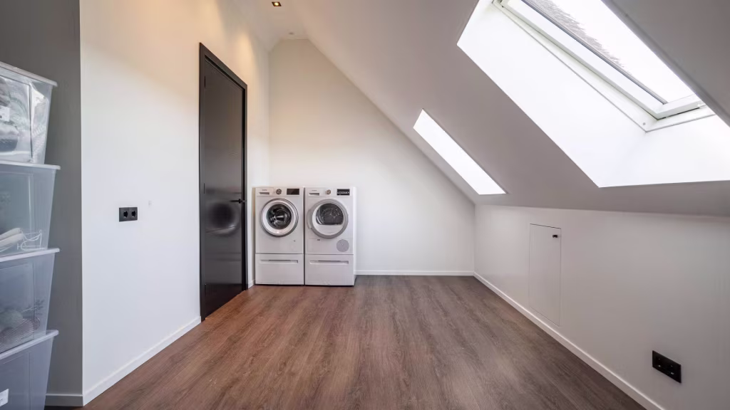Via de vaste trap bereikt u de zolderverdieping, waar een centrale overloop toegang geeft tot twee ruime zolderkamers. Dankzij drie dakramen valt er prettig daglicht binnen, wat deze ruimtes bijzonder geschikt maakt als extra slaapkamers, werk- of hobbyruimte.