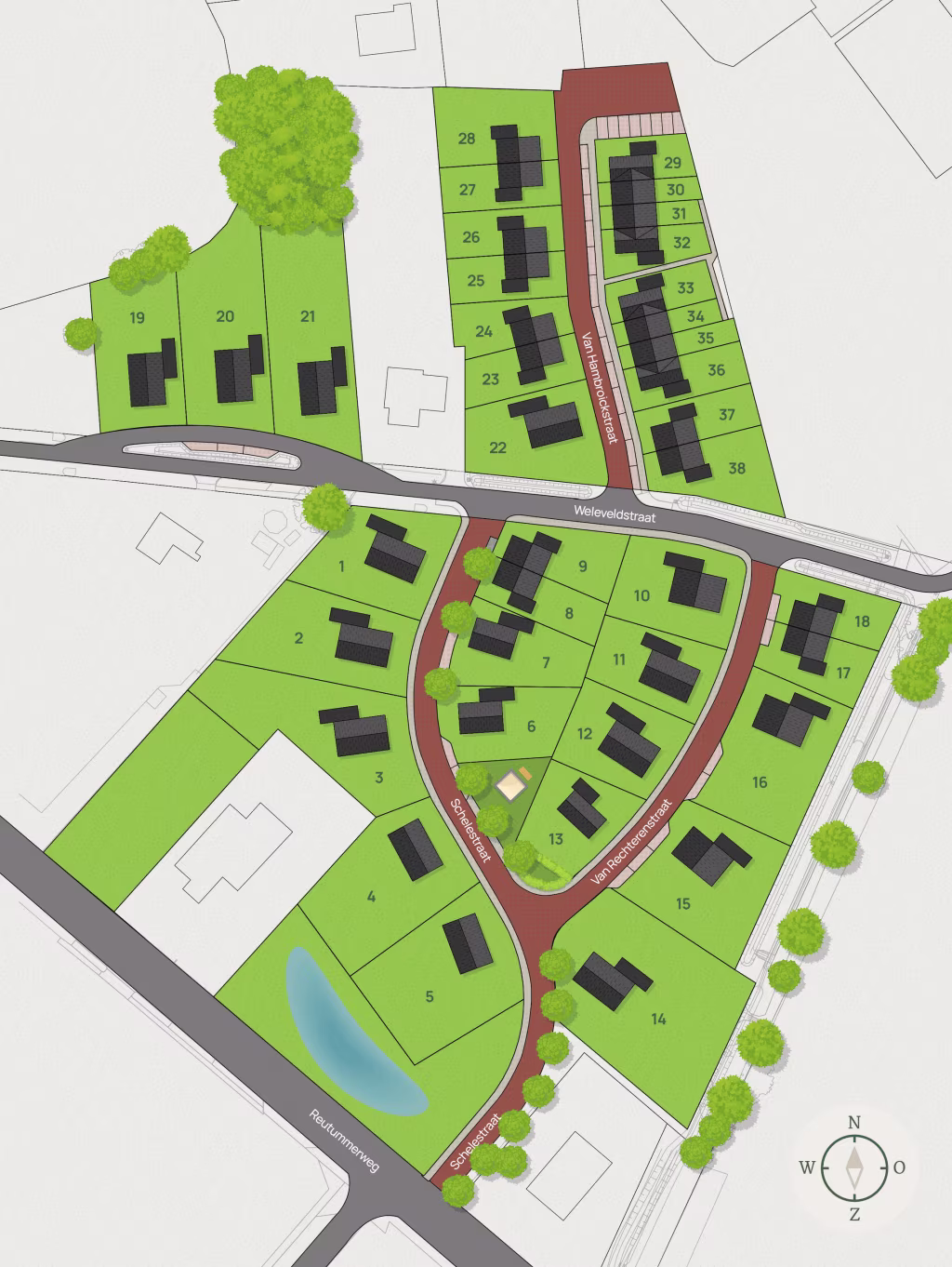 Het Weleveld, een prachtig nieuwbouwproject in het groen. Het project heeft een diversiteit aan woningtypes. Van comfortabele rij- en hoekwoningen tot sfeervolle twee-onder-éénkappers en riante vrijstaande woningen.