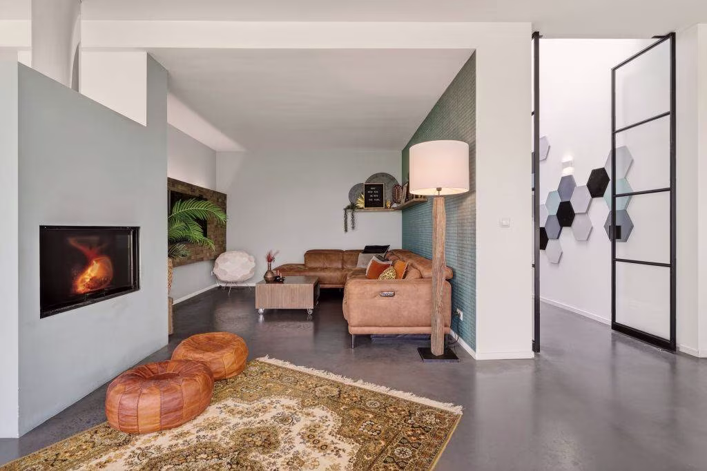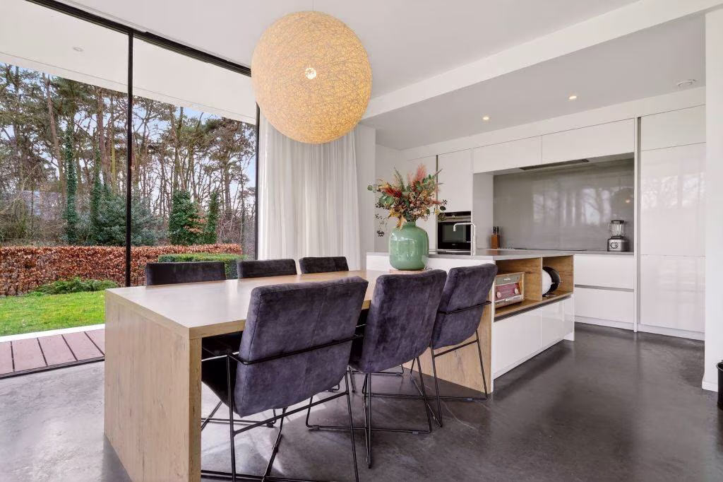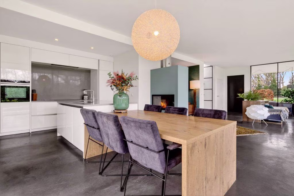 De hoogwaardige afwerking, gecombineerd met een warme en moderne uitstraling, maakt het geheel bijzonder comfortabel en stijlvol. De leefruimte vormt het hart van de woning: een plek waar wonen, koken en ontspannen op natuurlijke wijze samenkomen.