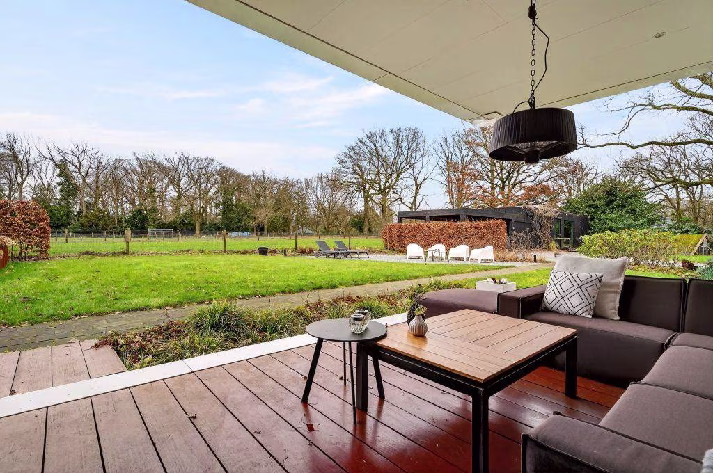 Een bijzonder pluspunt is de sfeervolle tuinkamer, die fungeert als een comfortabel verlengstuk van de woning. Hier kunt u in alle seizoenen genieten van het buitenleven, met een gezellige haard en een bar die deze ruimte uitermate geschikt maken voor lange avonden met familie en vrienden.